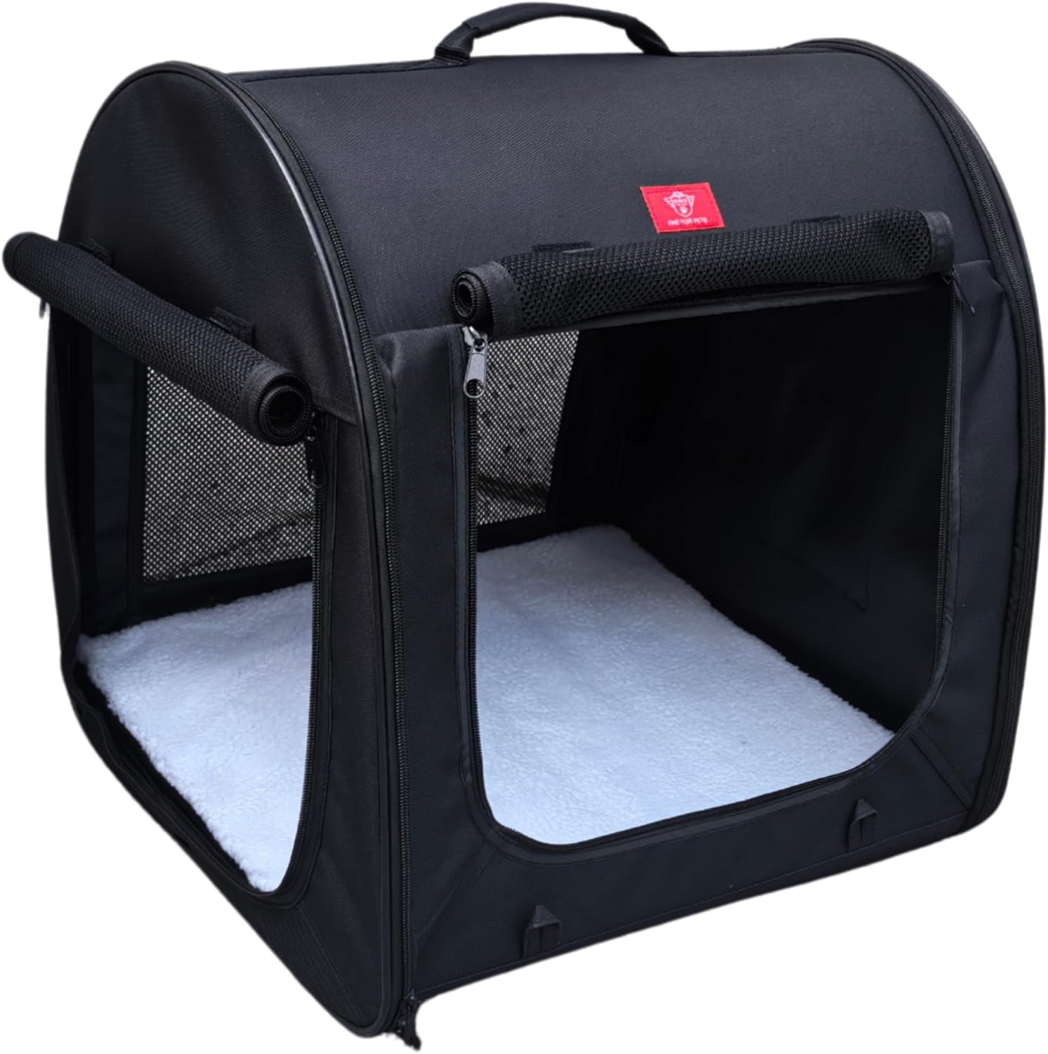 Fabric Portable Pet Kennel/Shelter, Single, Black 20"x20"x19.5" - Car Seat-Belt Fixture Included
