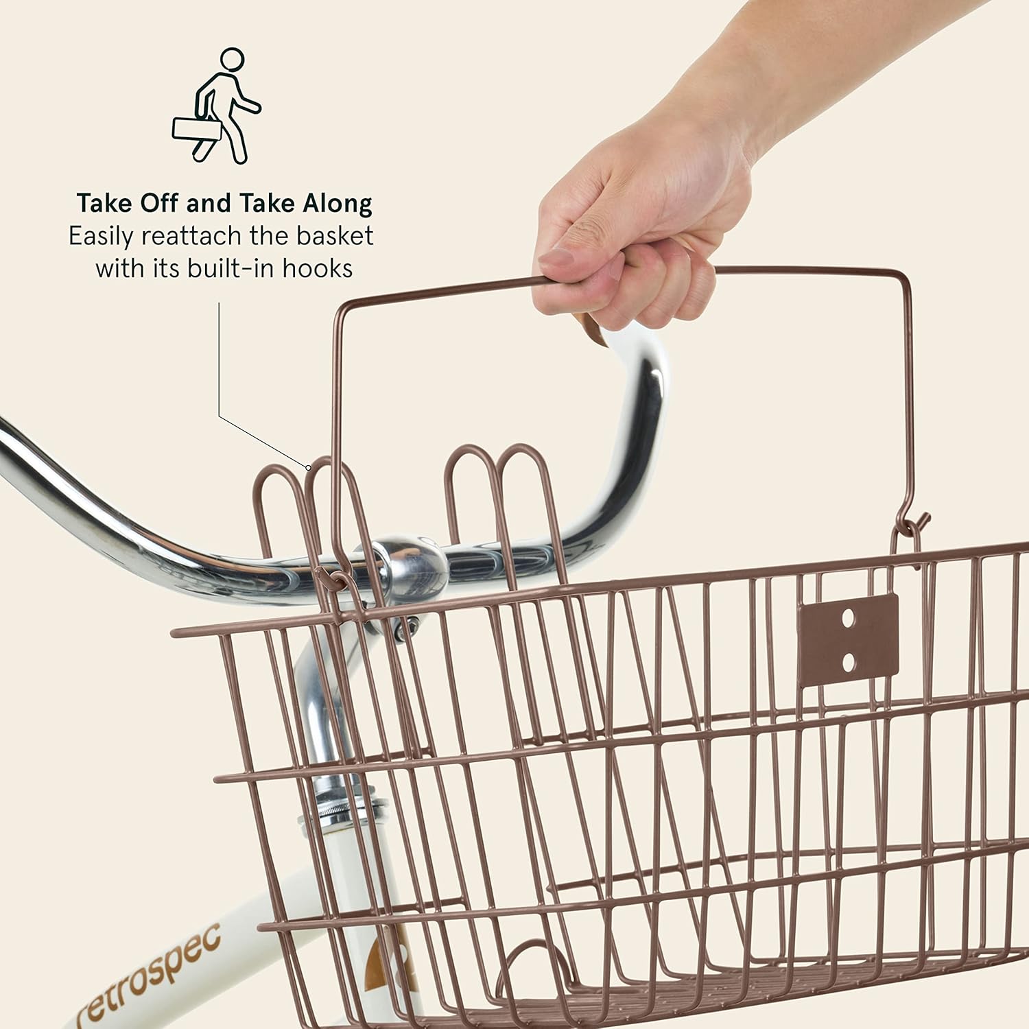 Retrospec Apollo-Lite Lift-Off Bike Basket - Detachable Steel Handlebar Basket with Carrying Handle for Commuting, Shopping & Beach Trips - 14.5in x 9.5in Weather-Resistant Biking Gear