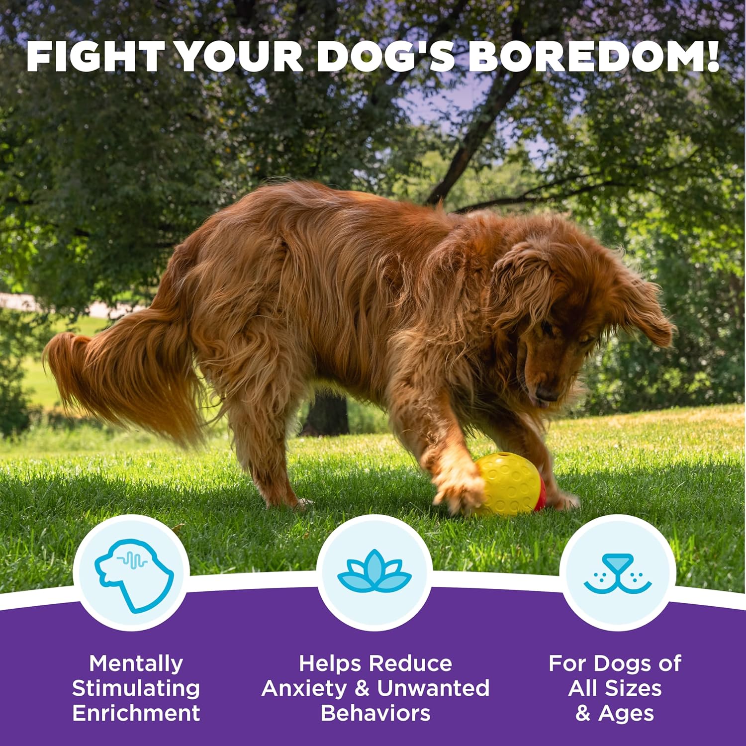 - Provides mental stimulation to help bust boredom – 15 minutes of mental stimulation is equal to 30 minutes of physical activity, giving dogs of all ages and sizes the exercise they crave
