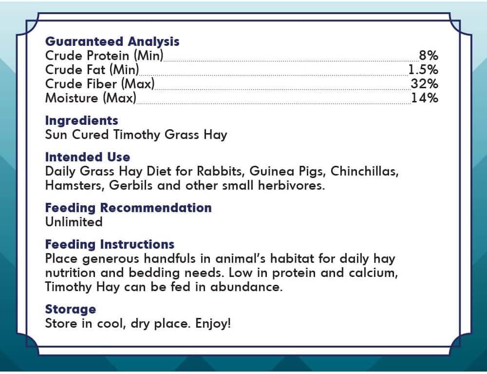 • This Hay Provides For Your pet’S Many Needs, From Dental Care, To Play Time, And Is Additive And Preservative Free