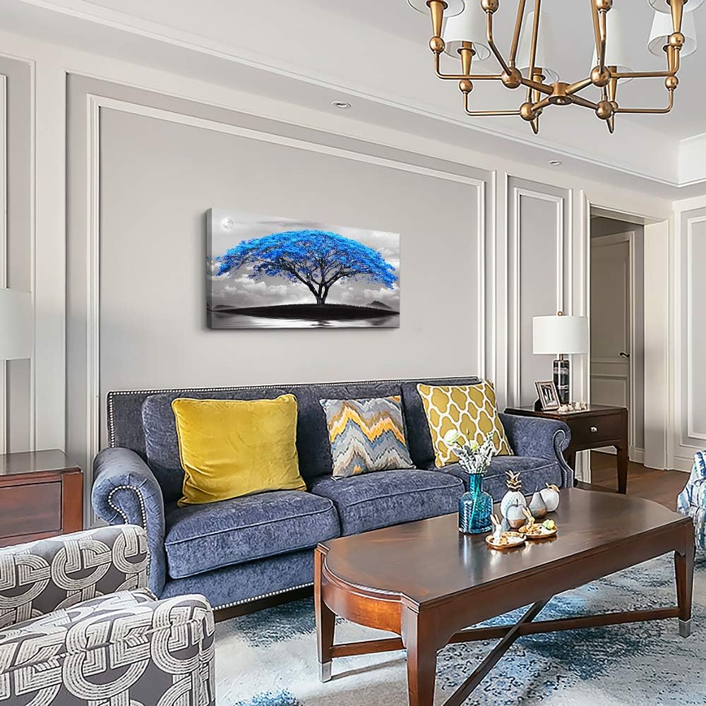 canvas wall art for living room bathroom Wall Decor Black and white landscape Blue tree moon painting to Hang Home Decorations for office bedroom kitchen Works canvas Prints pictures 24" x 48"inch