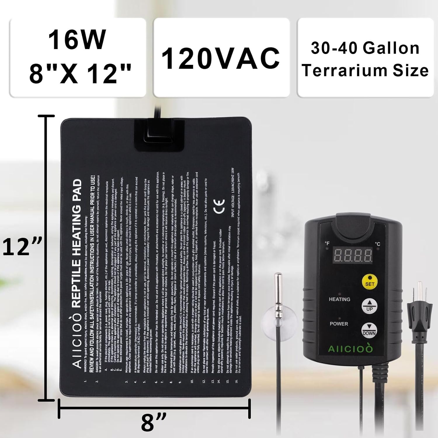 - COMBO SET - Packed with digital thermostat and under tank heater. Reptile under tank heat pad provides your reptile gentle and constant warm 24 hours, and monitors and control the temperature all the time.