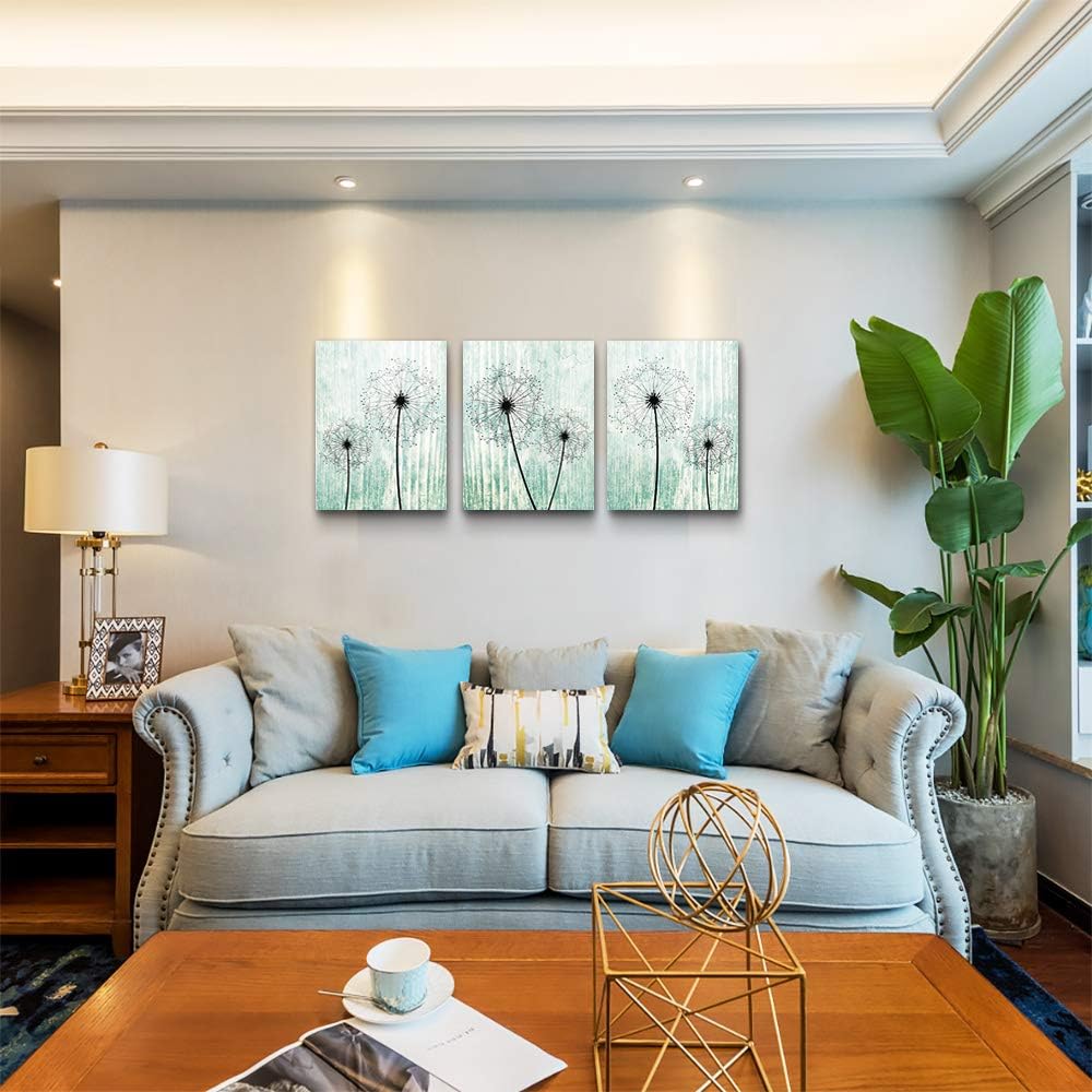 light green background Dandelion Canvas Wall Art Paintings for Living Room Canvas Print Wall Artworks Bedroom Decoration, 3 piece Framed office kitchen bathroom Wall decor posters Home Decorations