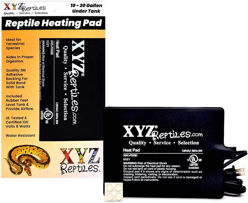- Snake Heating Pad: features 3M adhesive backing for solid bond when using as a snake under-tank heater, includes four 6mm rubber bumpers to level tank, and provide air flow measures 7.5 x 5.5 in