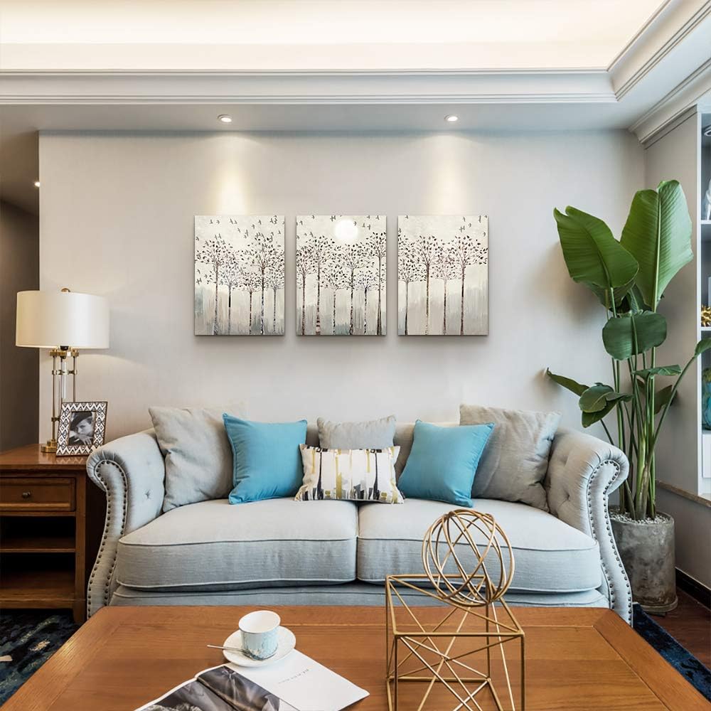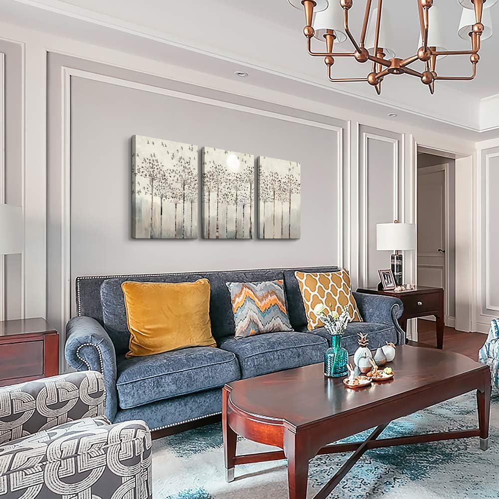 trees and birds Abstract Paintings Canvas Prints Wall Art for Bedroom Bathroom Wall Decor office Artworks Pictures Wall Decorations for Living Room,3 Piece Sunrise and sunset Modern Home Decoration