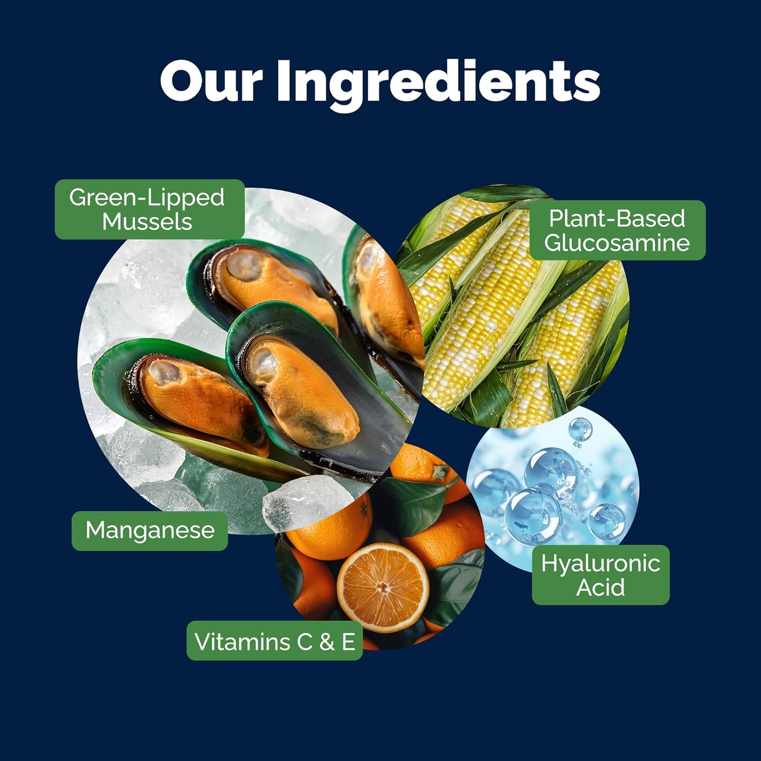 - NATURAL INGREDIENTS SUPPORTING DOG JOINTS : Dog joint chews that support joint structure, healthy cartilage, collagen and dog joint health. Manganese supports dog collagen formation in cartilage, tendons and ligaments, which helps maintain healthy joints. Includes: Glucosamine HCI 750mg, Green Lipped Mussel 450mg, Asorbic Acid Vitamin C 37.5mg, Manganese Sulfate 9mg, Hyaluronic Acid 4.5mg, D-Alpha Tocopherol Vitamin E 1.5mg