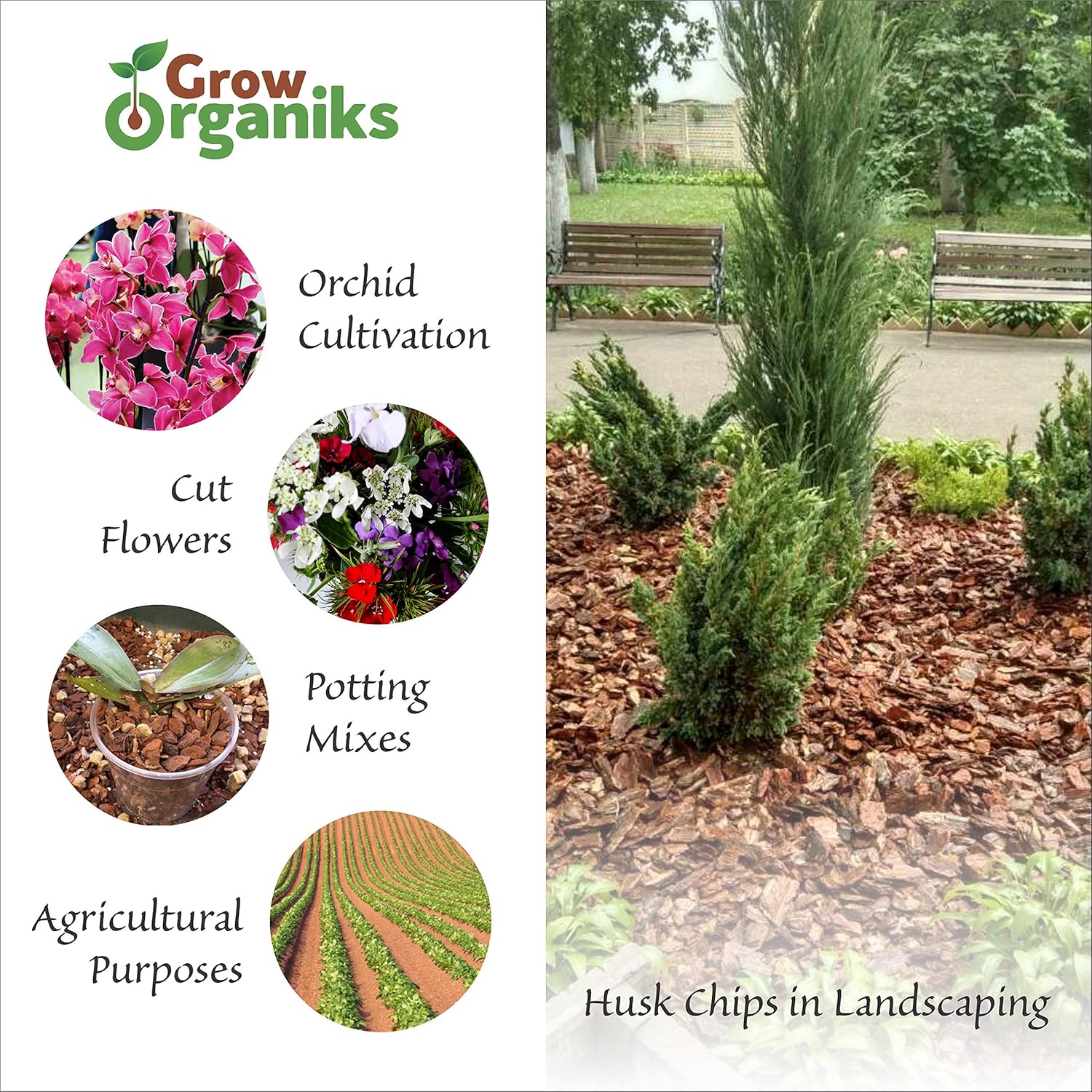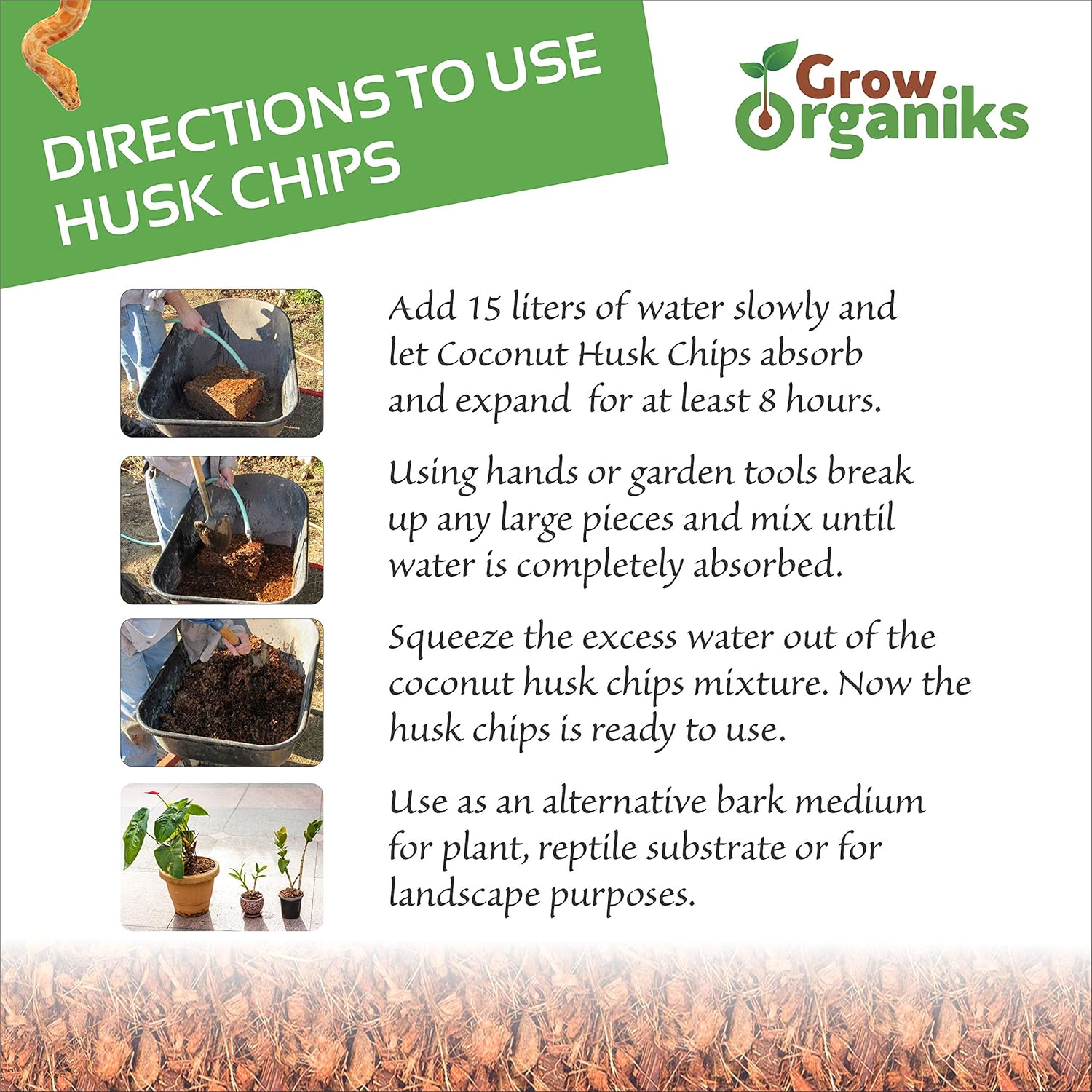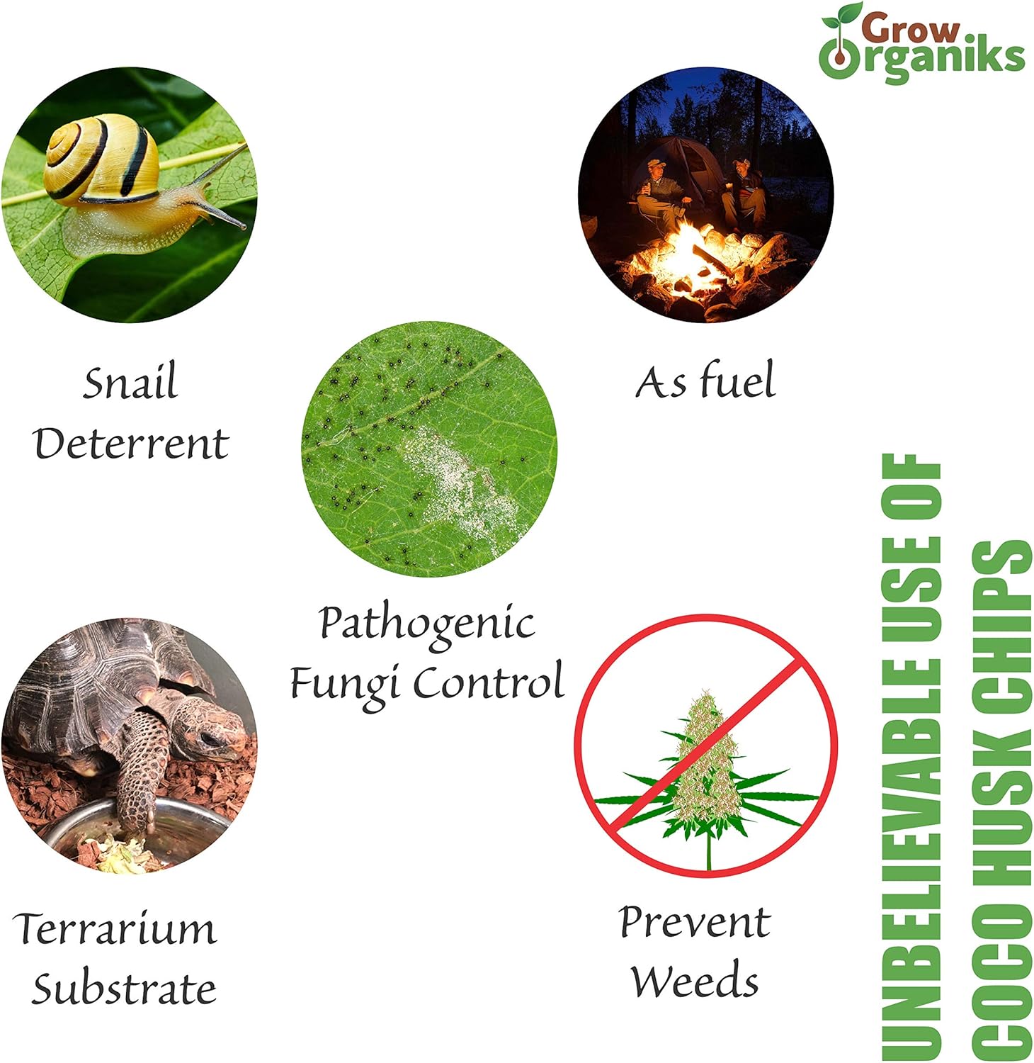 - [๐100% Natural & Biodegradable] Grow Organiks Coconut Husk chips are cut pieces of the husk of the coconut compressed into 11 lbs.Coconut husks are a sustainable alternative to other mulches. Our Organic coco chips are best suitable for growing plants, and also perfect for reptile substrate.