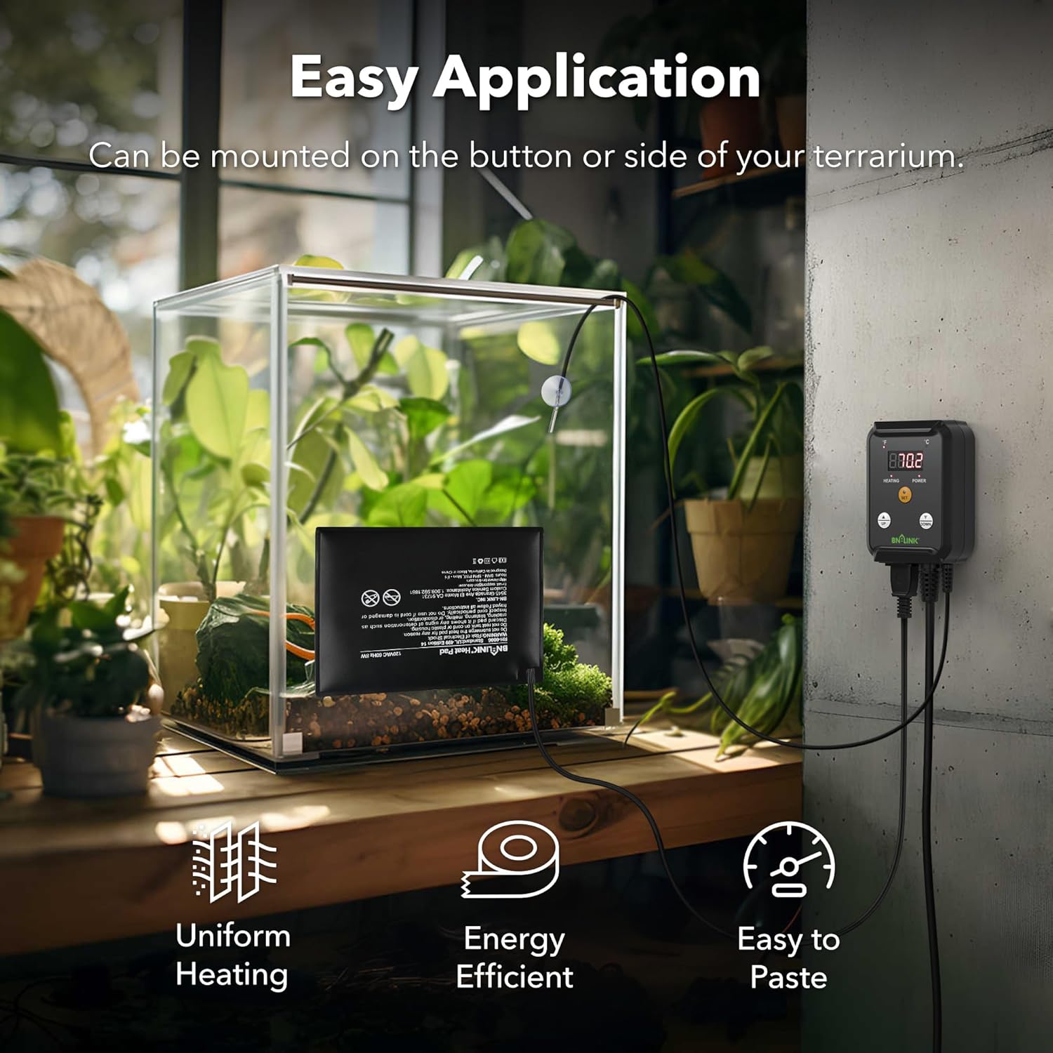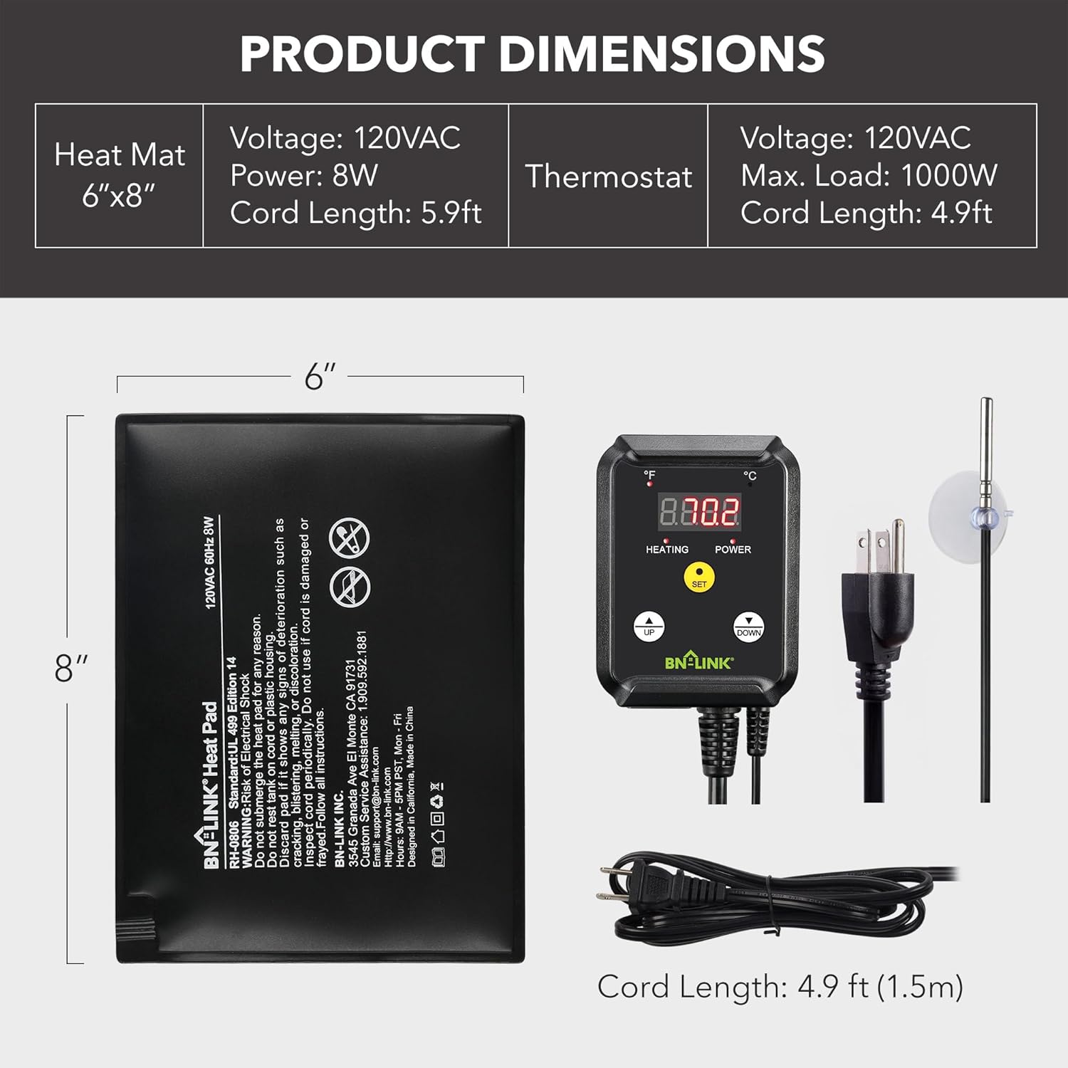 BN-LINK Durable Reptile Heating Pad 6" X 8" with Digital Thermostat Under Tank Heater Terrarium Warmer Combo Set for Turtles, Lizards, Frogs, and Other Reptiles