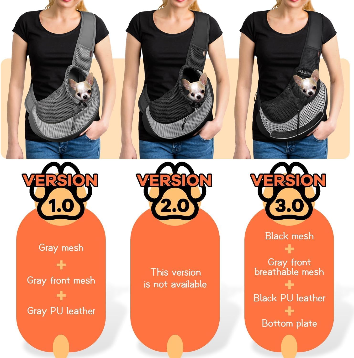 YUDODO Pet Sling Carrier for Small Dogs & Cats – Hands-Free Puppy Carrier with Safety Hook, Large Zipper Pocket, Soft Breathable Mesh, Adjustable Strap & Reflective Strip (Gray 1.0 S)