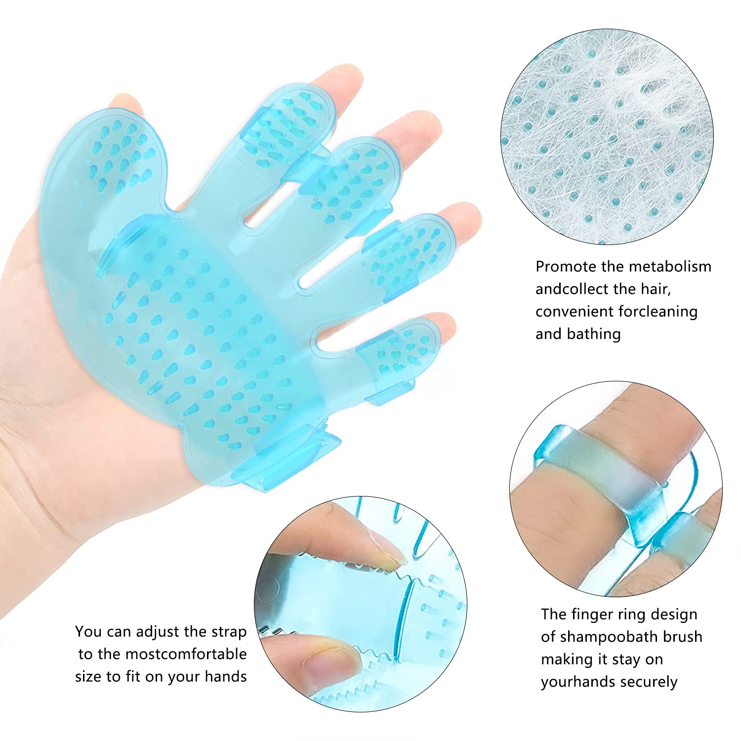 - ๐ฐSmall Animal Cleaning Tools - This pet bath brush massage comb is specially made for pet showers, he grooming brush is equipped with an adjustable handle, which can be fit for different size hand, with massage particles. It can comb the hair and massage the skin when taking a bath, which not only makes it cleaner, but also promote the metabolism benefits the health of the fur for you pet