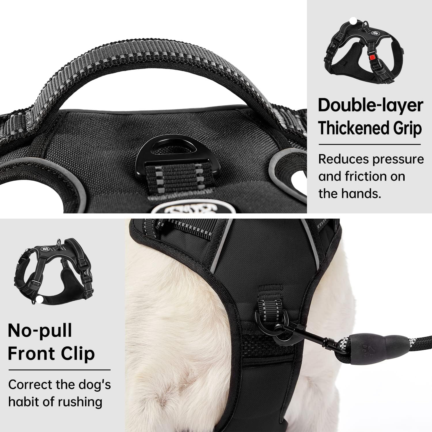 IVY&LANE No Pull Dog Harness for Large Dogs, Dog Vest Harness with Leash, Safety Belt and Storage Strap, Fully Adjustable Harness, 360° Reflective Strip, Soft Handle (Black, L)
