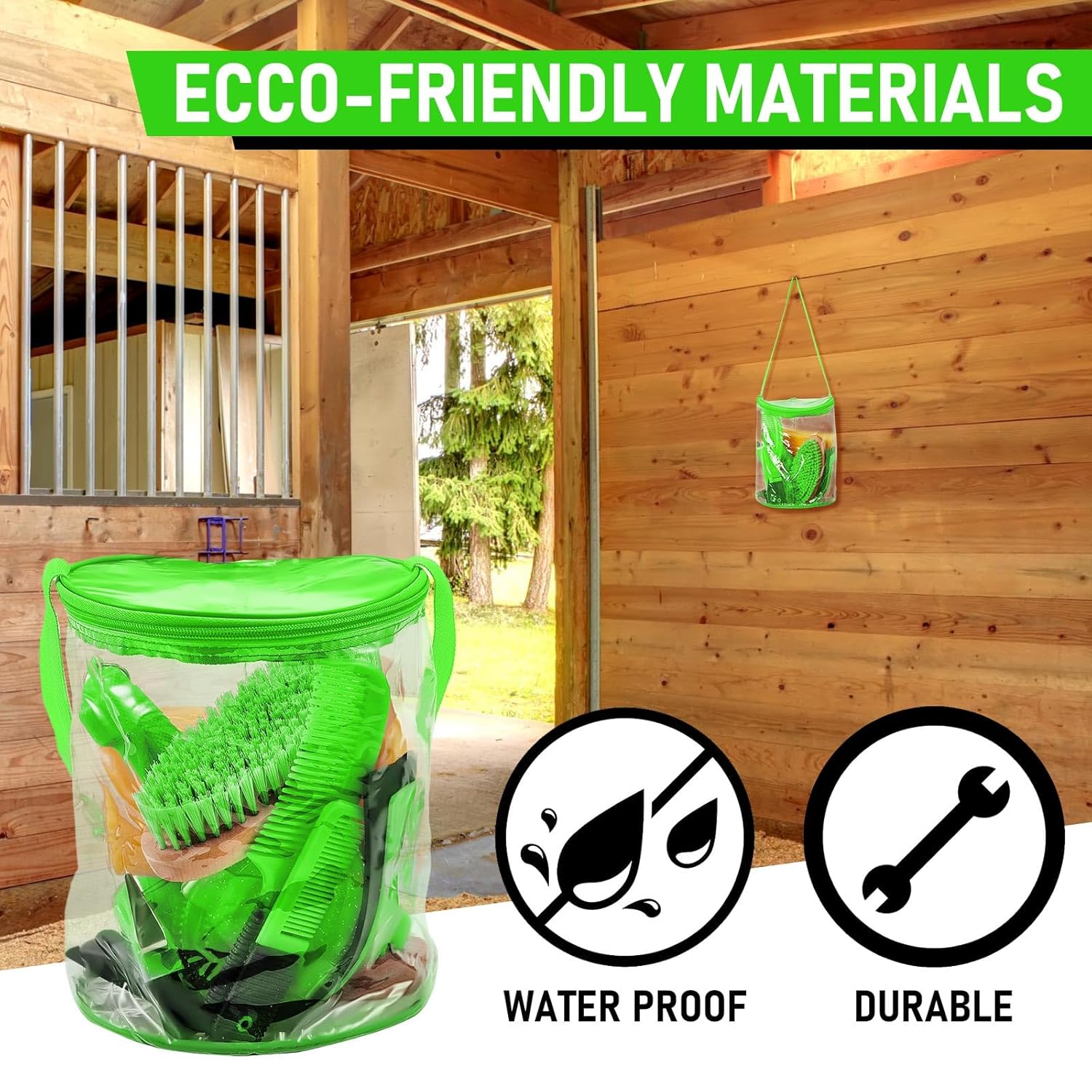 9 Pieces Horse Grooming Kit Tack Room Supplies Set with Organizer Tote Bag, Oval Massage Curry, Hard and Soft Brush, Hoof Pick, Sweat Scraper, Bathing Sponge, Combs for Horse Riders Beginners (Green)