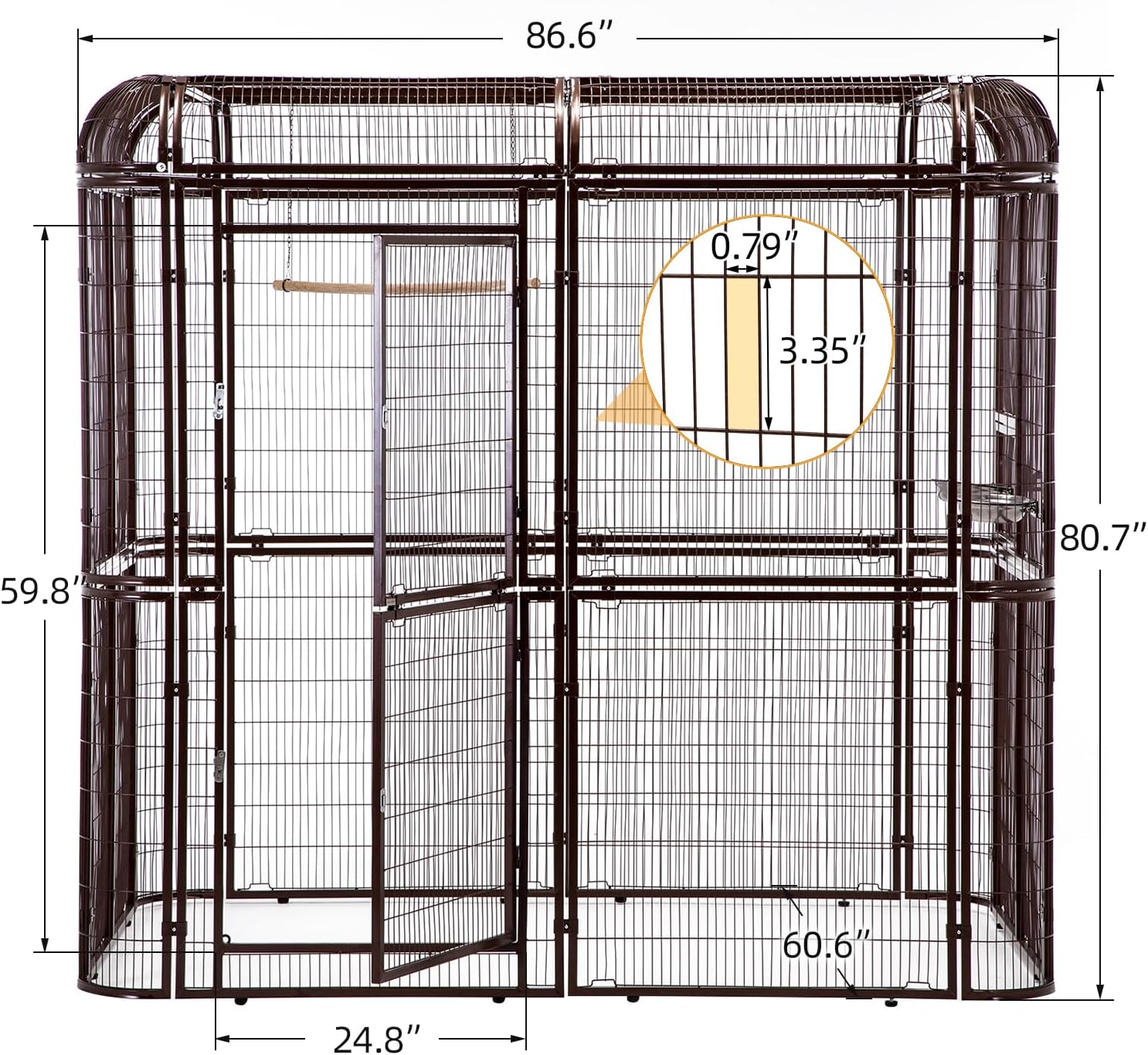 - Need to Assemble - The cage comes with three separate packages. Overall Size: 86.5”L x 60.5”W x 80.39”H;Door size: 59.8"H X 24.8"W