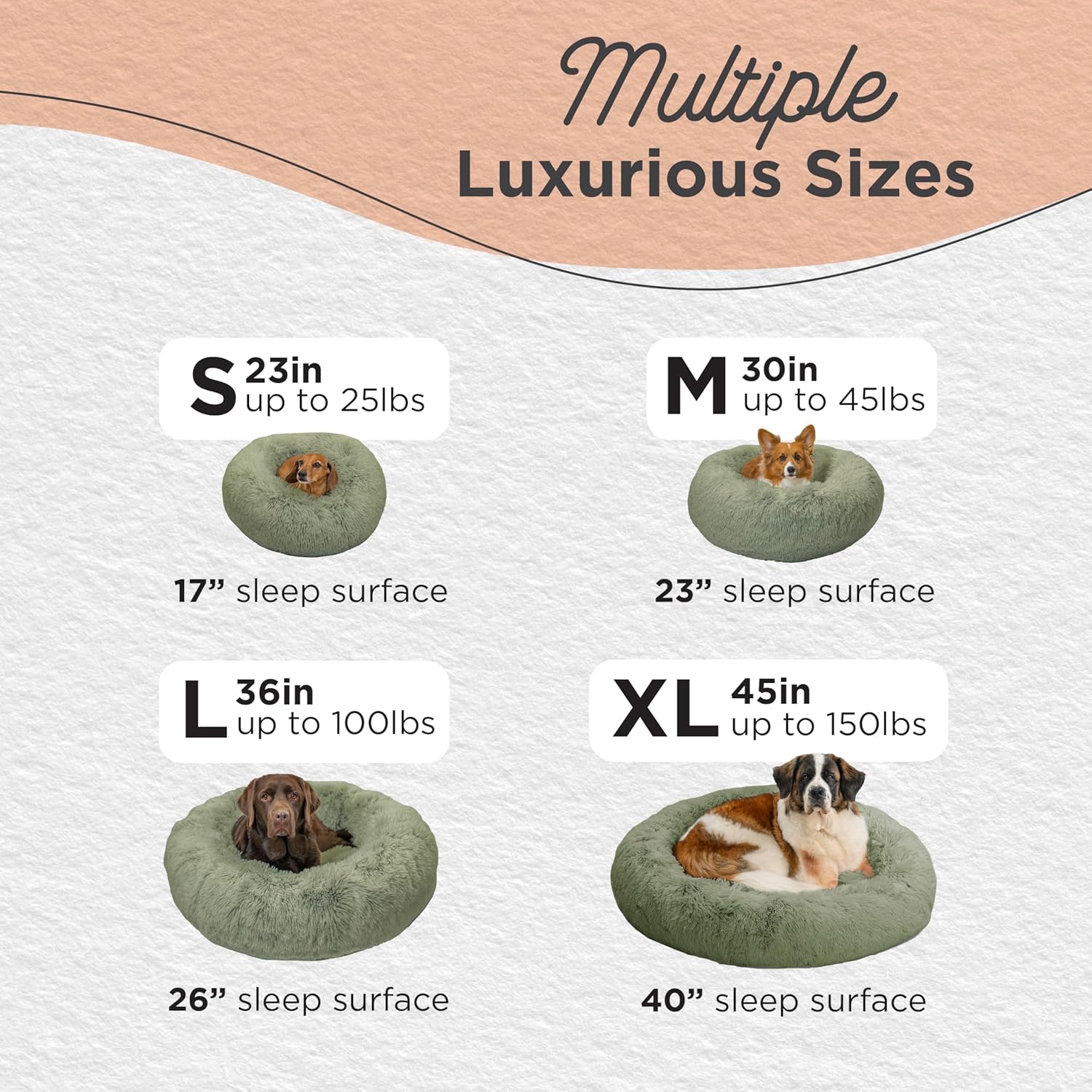 Best Friends by Sheri Original Calming Donut Dog and Cat Bed, Shag Faux Fur, Sage Green, XL (45in x 45in) - Anxiety Relief for Pets Up to 150 lbs