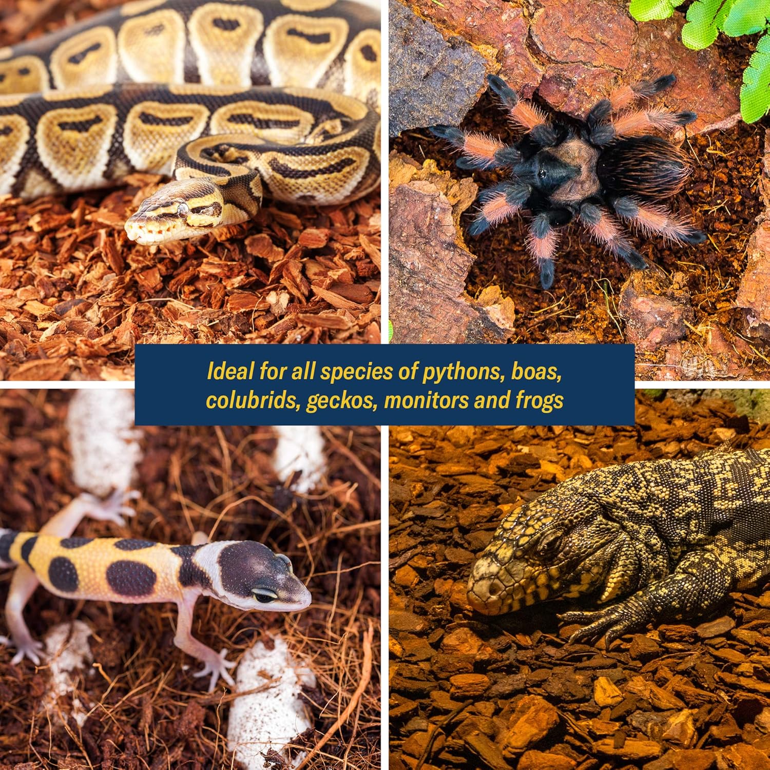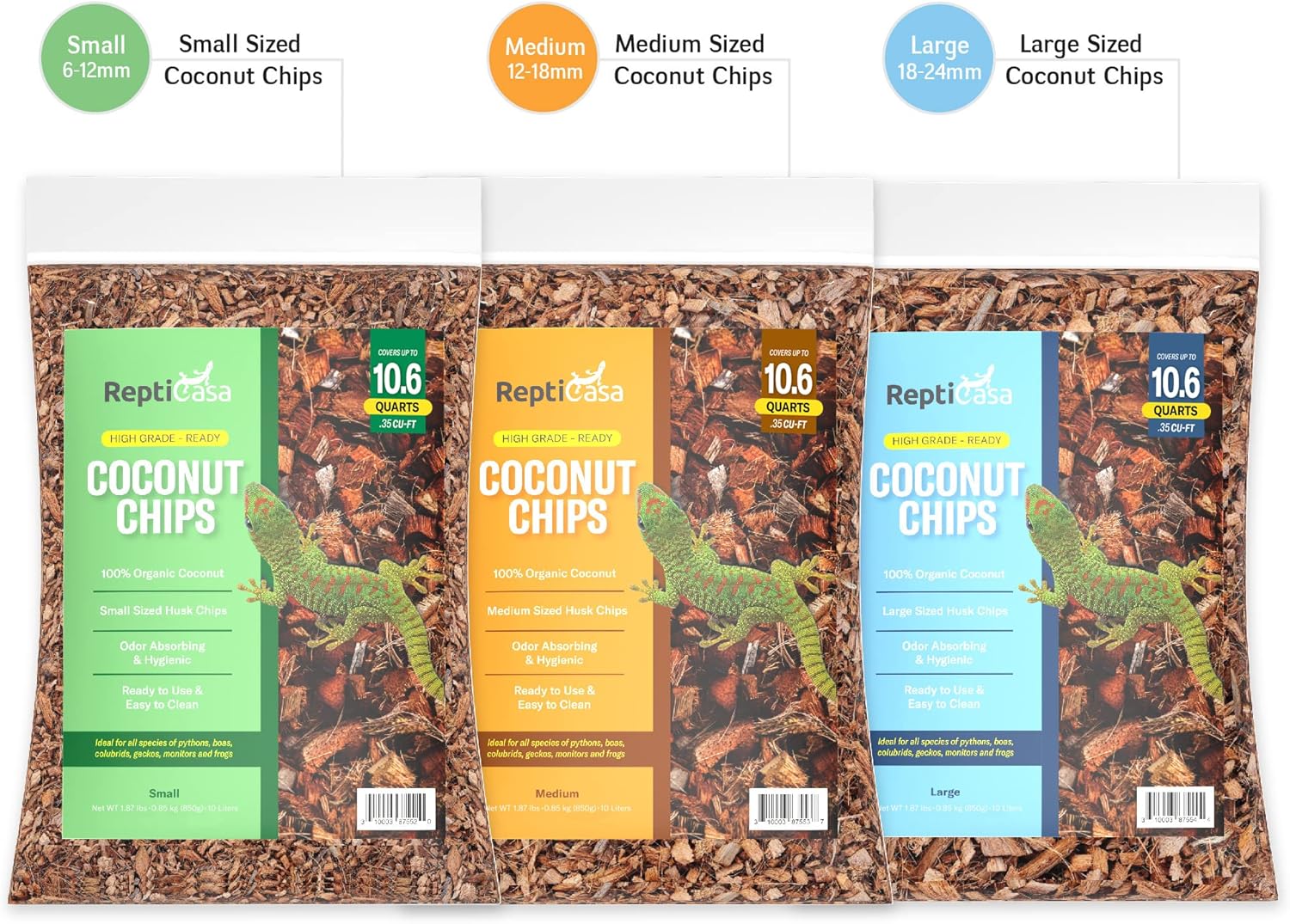 - Organic Coconut Husk Chips – Ideal bedding and breeding use for reptiles and amphibians, our Coconut Chips is all-natural and organic to also support other common pets like geckos, tortoises, turtles, boas, pythons, lizards, and snakes.