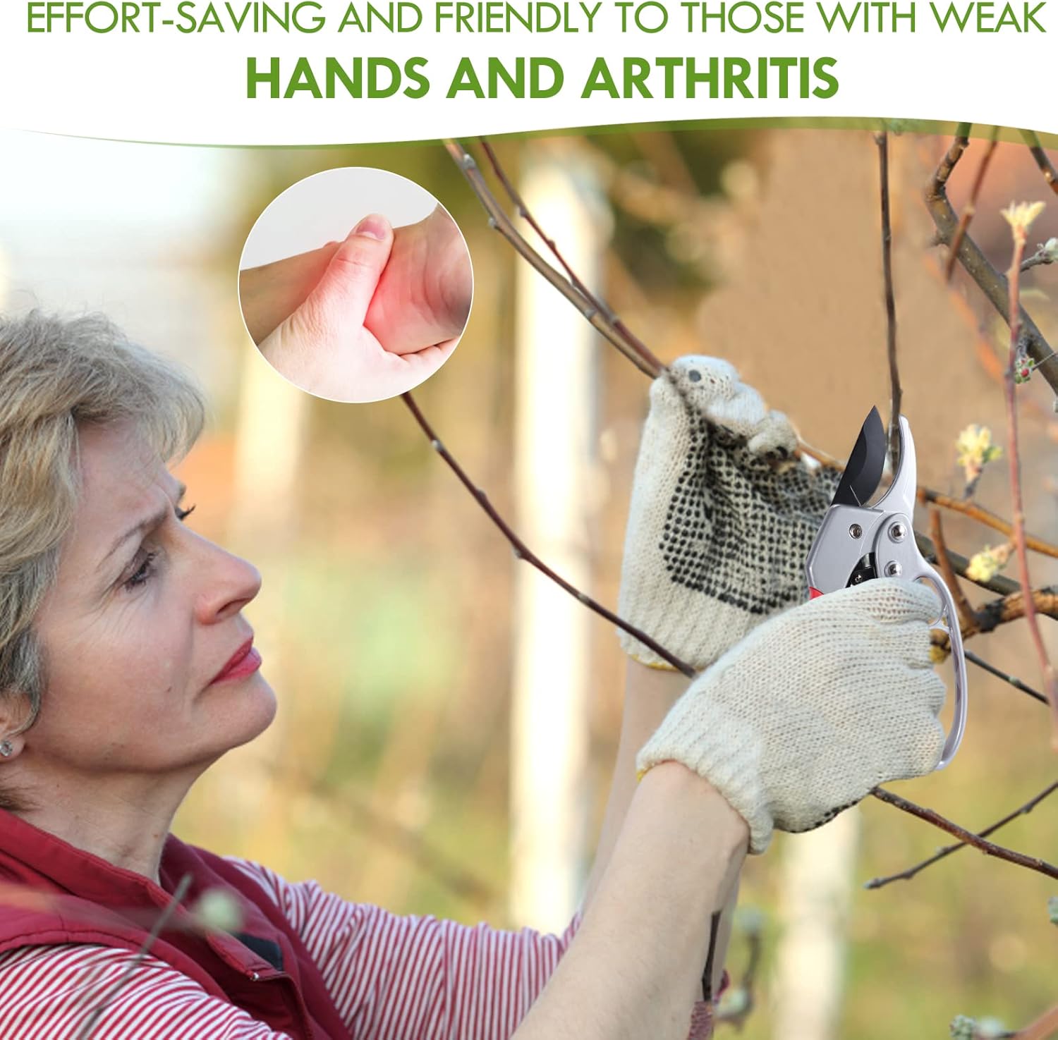 - ๐GARDENING GIFTS AND BRAND GUARANTEE: This pair of scissors is a gift for gardening enthusiasts because of its easy-to-lock feature and comfortable handle design. Among horticulturists, it's a popular choice for Christmas gifts. we do not have to worry about the quality and after-sales problems of this brand protection pruning scissors.