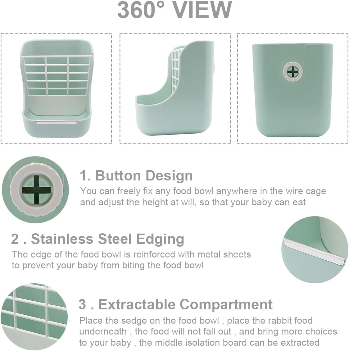 - 🐹【Small animal automatic feeder】The design of food bowl + grass rack, provides more choices for pets, and the rack is easy to disassemble, which can provide more space for placing food.