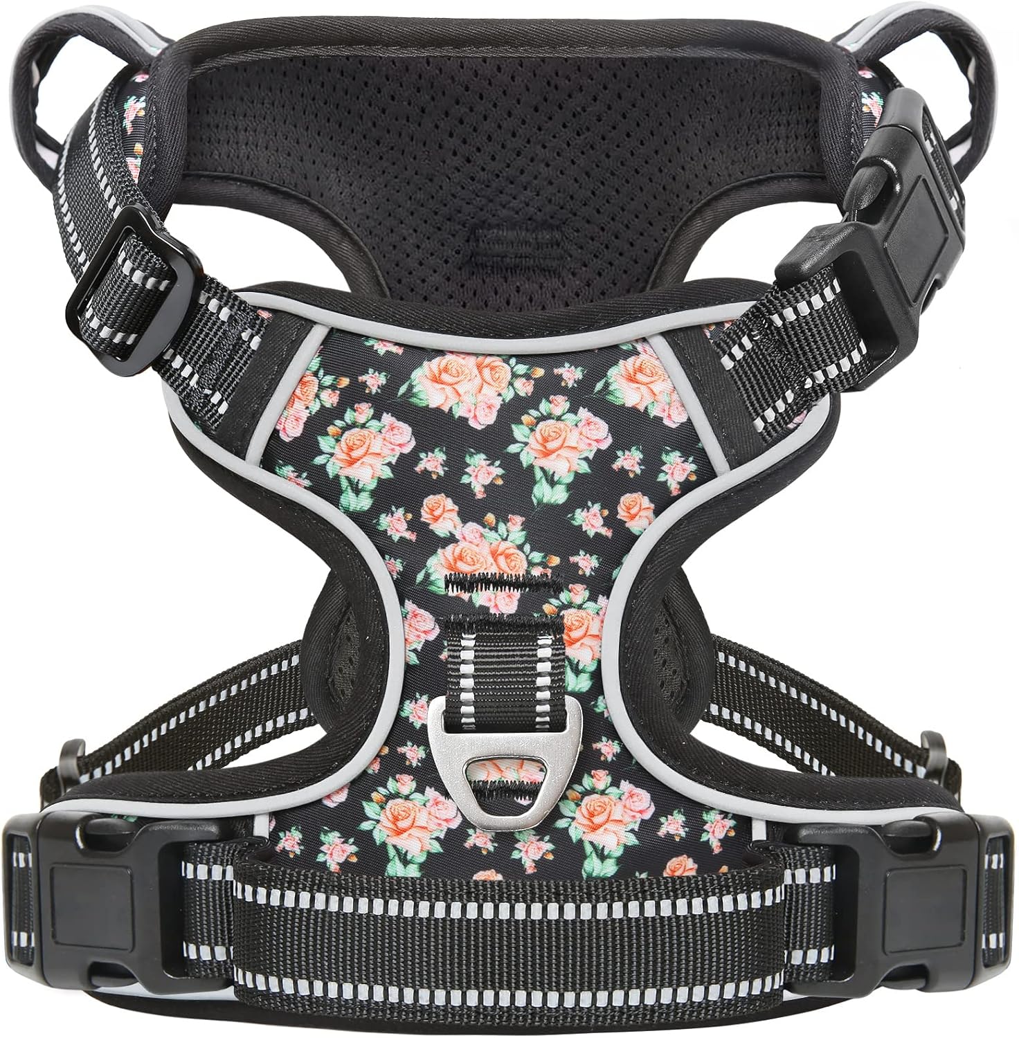 Timos Dog Harness, No-Pull Pet Harness with 2 Leash Clips, Adjustable Soft Padded Dog Vest, Reflective Outdoor Pet Oxford Vest with Easy Control Handle