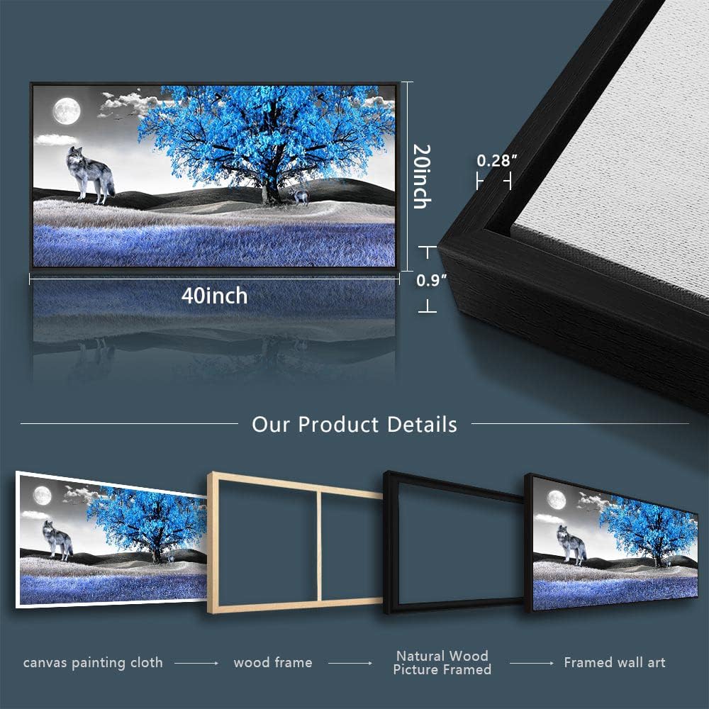 Framed Canvas Wall Art For Living Room Family Wall Decorations For Bedroom Modern Office Wall Decor Paintings Blue Tree Landscape Pictures Artwork Canvas Art Prints Home Decor Black Frame 20" X 40"