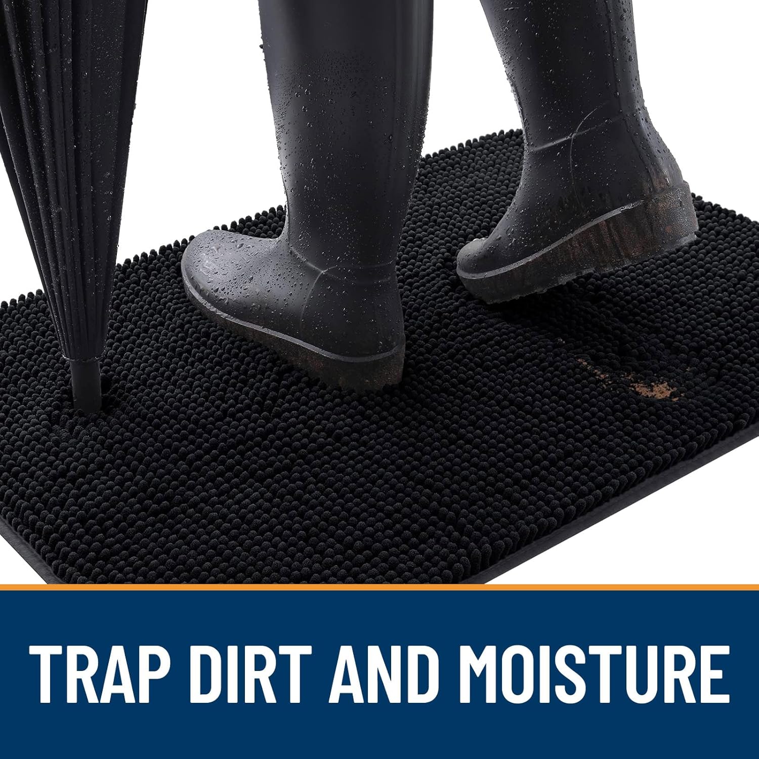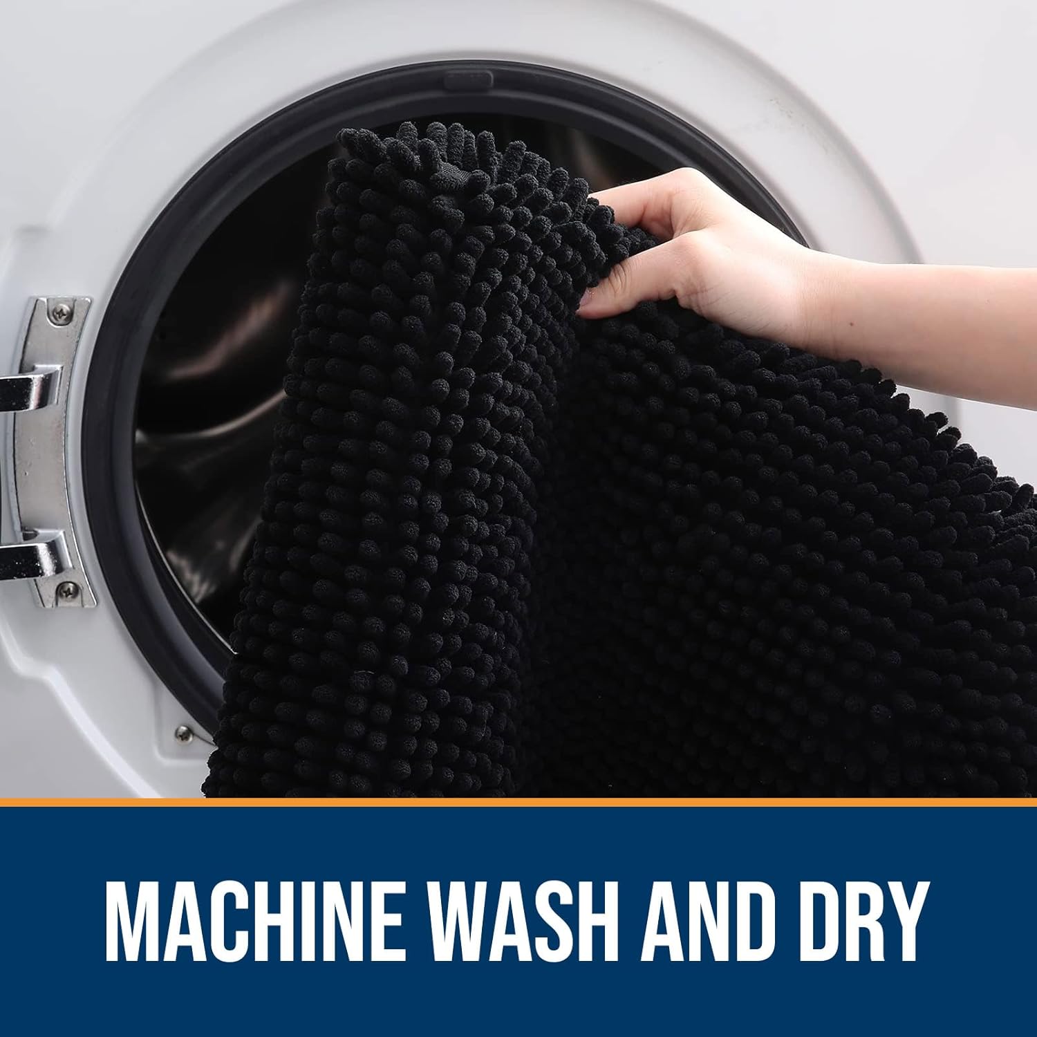 OLANLY Dog Door Mat for Muddy Paws 24x16, Absorbs Moisture and Dirt, Absorbent Non-Slip Washable Doormat, Quick Dry Chenille Mud Mat for Dogs, Entry Indoor Entryway Carpet for Inside Floor, Black