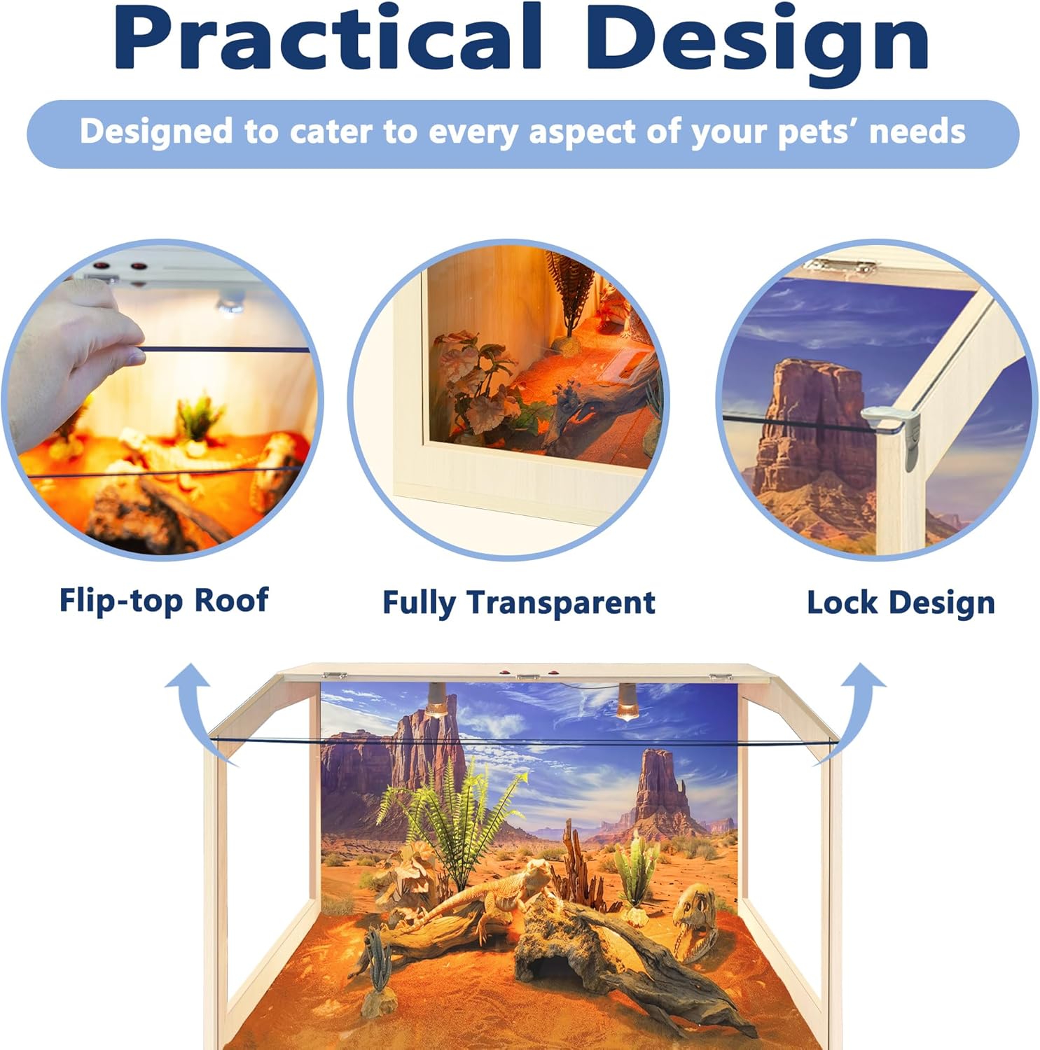 - 【Superb Reptile Habitat】Designed for reptile lovers, our enclosure offers spacious interiors for your reptiles to roam freely. The front acrylic panel guarantees crystal-clear visibility, while top and side vents ensure optimal airflow. Please note: This habitat is not suitable for water storage. Available in 4 sizes to suit your needs!