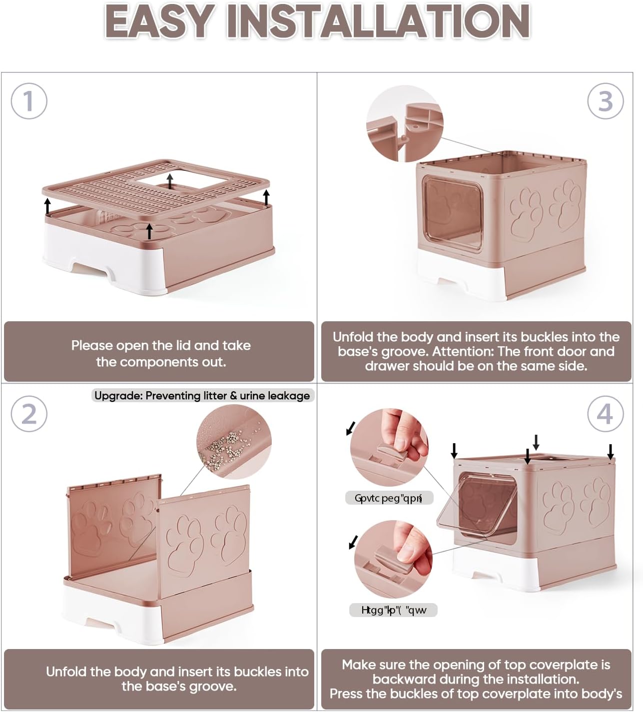 - [Pet Friendly Product] - The cat litter box with lid is made of stain resistant plastic. It can be flexibly folded and easy to clean, providing a neat living environment for your cat. The X-large litter mat is made of safe, high quality PVC material that is more friendly to your kitty