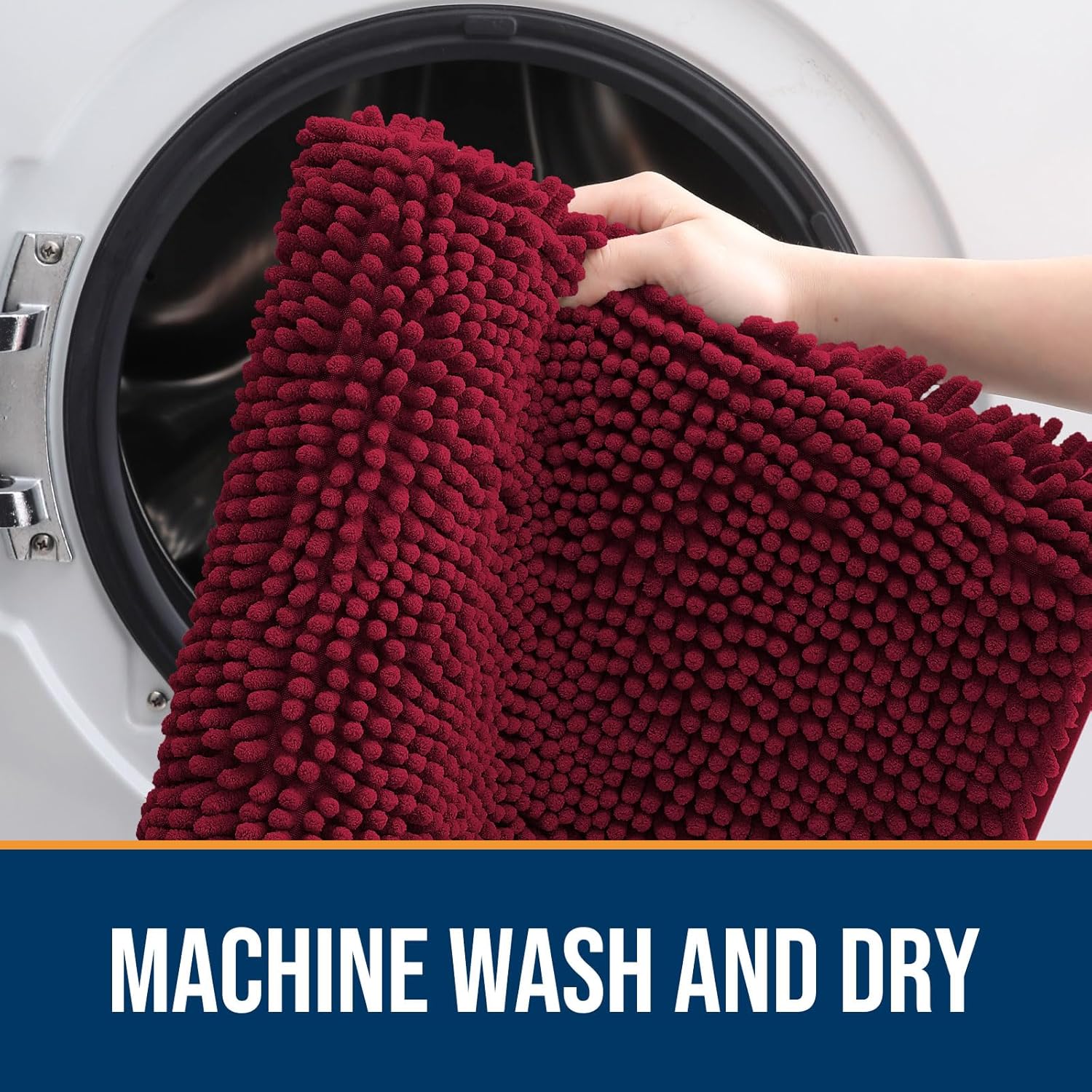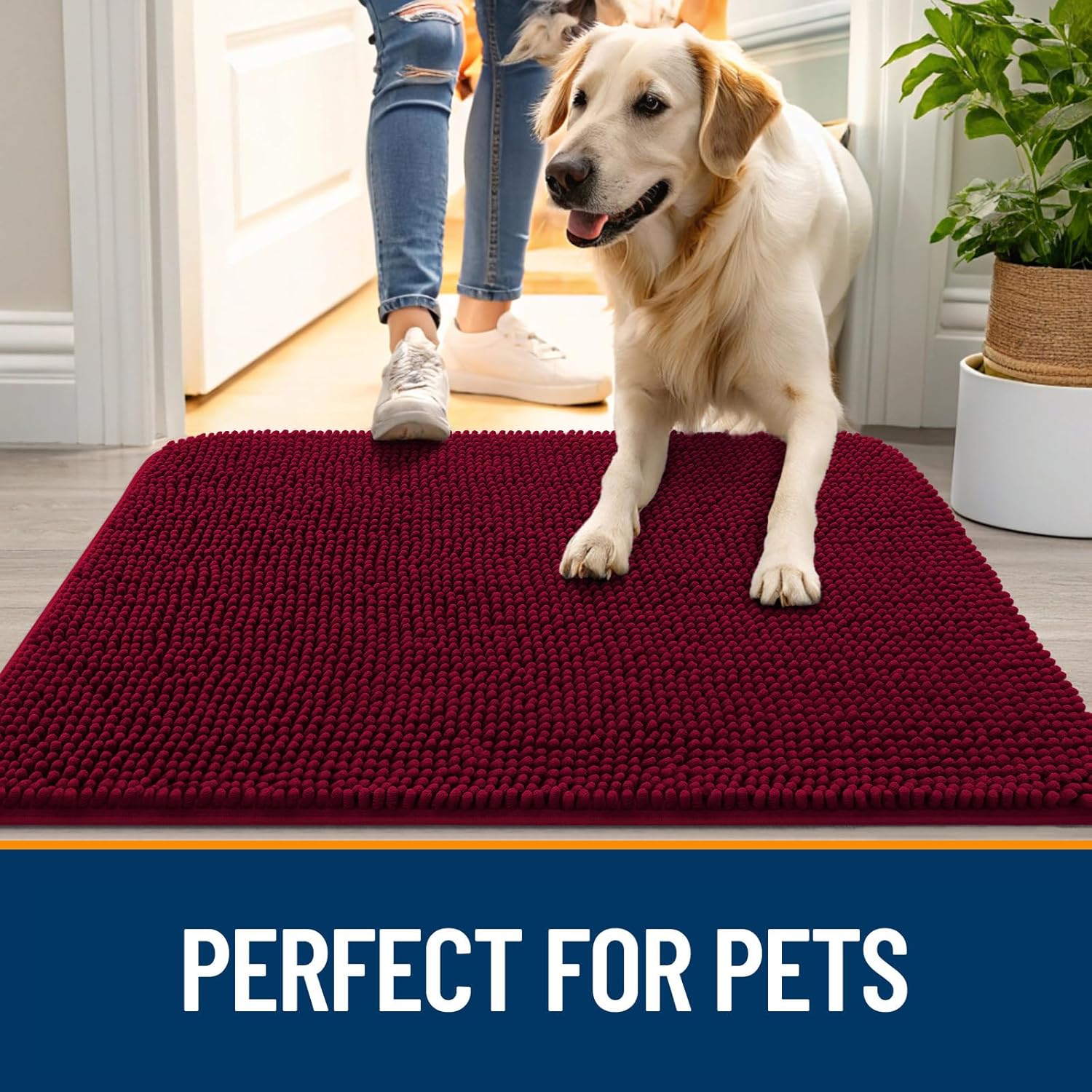 OLANLY Dog Door Mat for Muddy Paws 30x20, Absorbs Moisture and Dirt, Absorbent Non-Slip Washable Doormat, Quick Dry Chenille Mud Mat for Dogs, Entry Indoor Entryway Carpet for Inside Floor, Burgundy