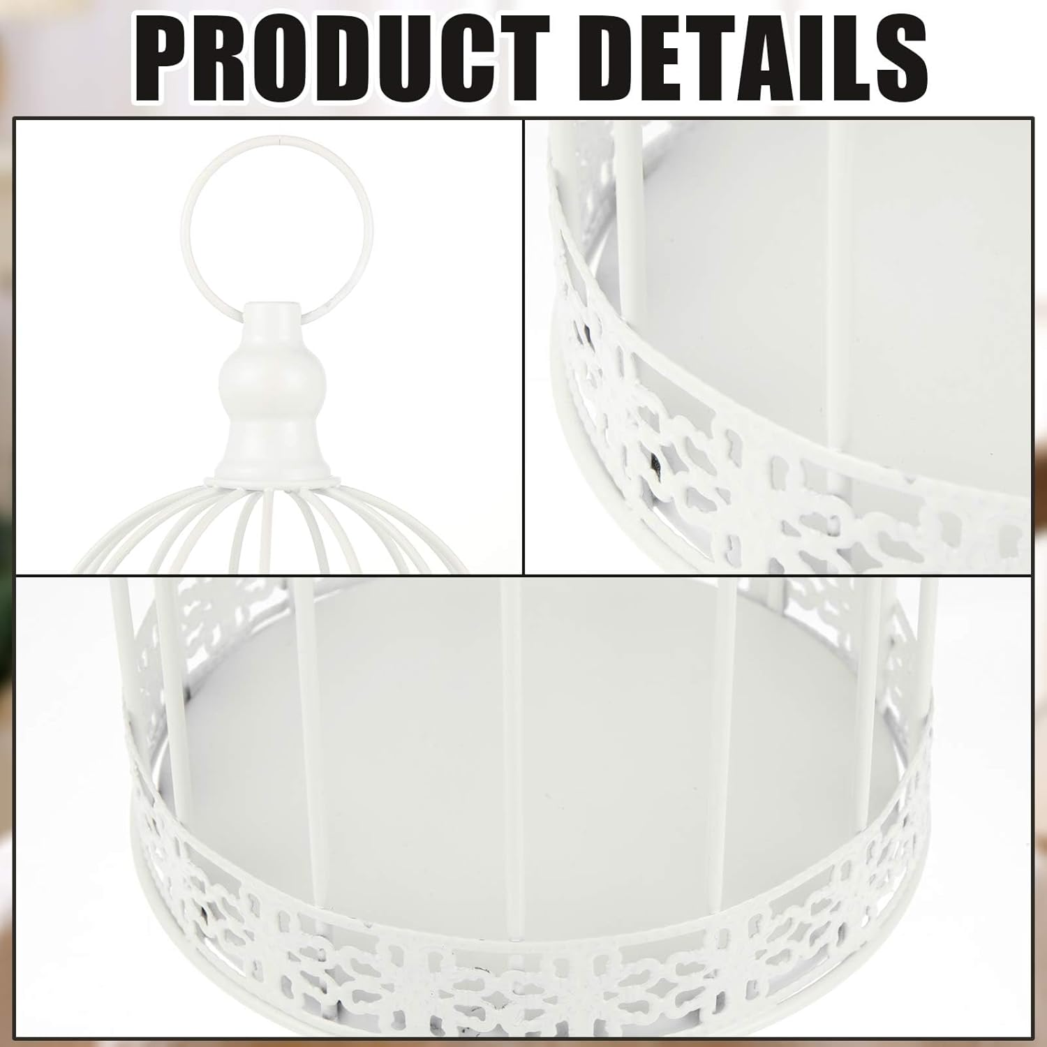 Sliner 4 Pcs Bird Cage Decorative Candle Holder Vintage Candle Holder Cage Lanterns Model for Modern Table House Home Decoration(White)