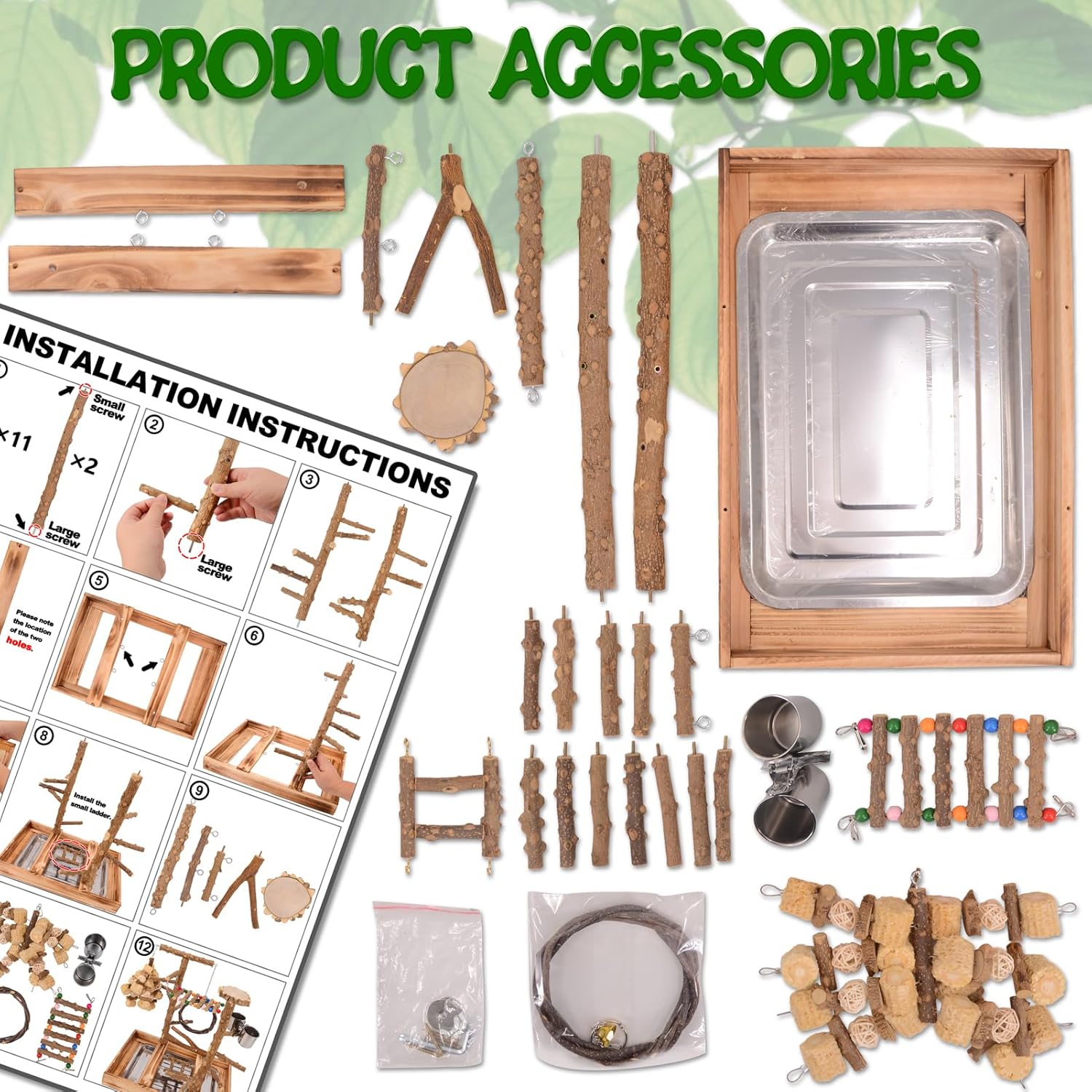 - Activity Center: With bird toys (including bird chewing toy, bird swing, platform, perches), it provides a wealth of activities and entertainment methods for your feather friends, help to release energy and anxiety and reduce boredom
