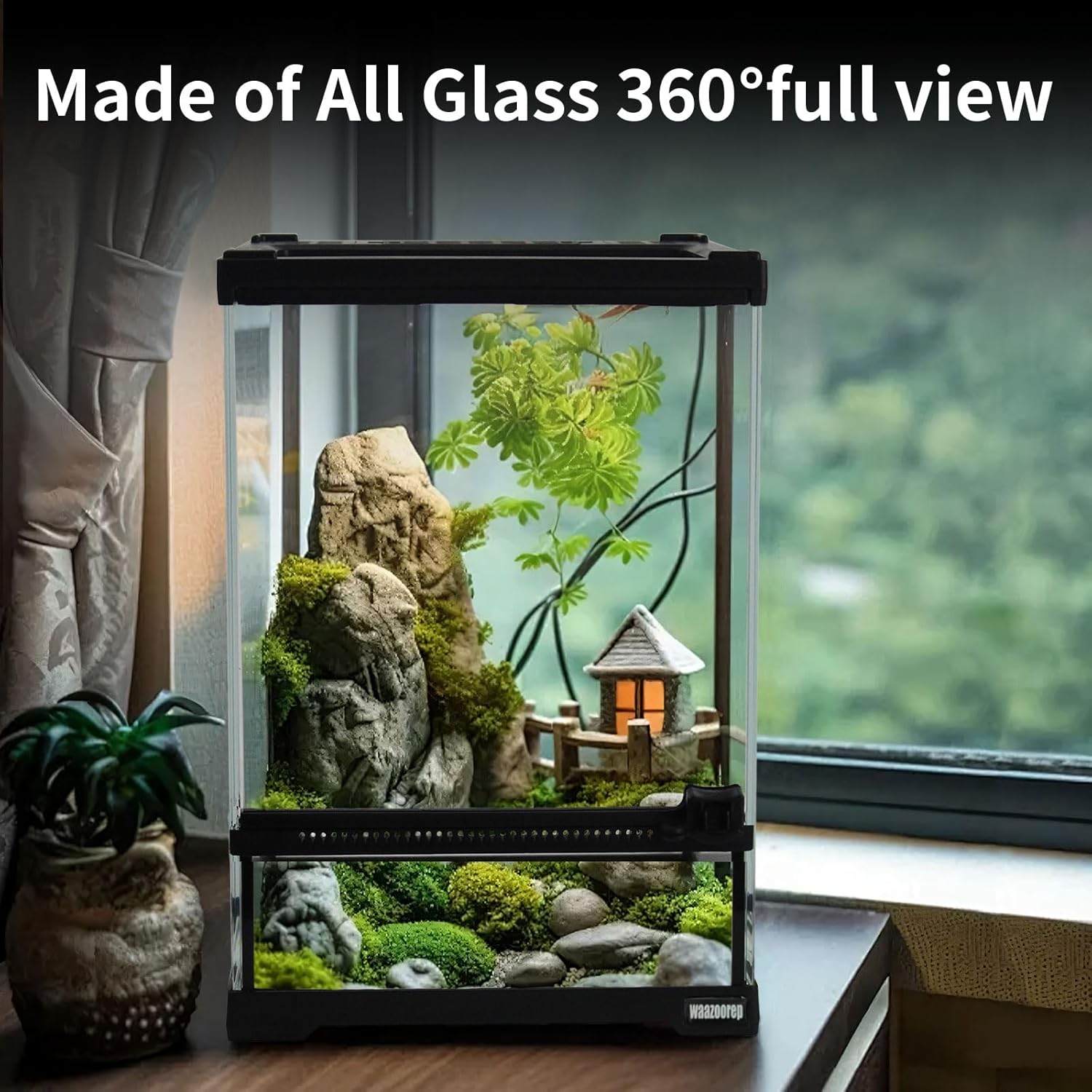 - 【Compact Design Mini Glass Container】: Made of premium thick glass base for extra safety. The front door with one hand opens separately, making this reptile terrarium easy to access and easy to clean, decorate and maintain. Specially designed locks also help prevent escapes