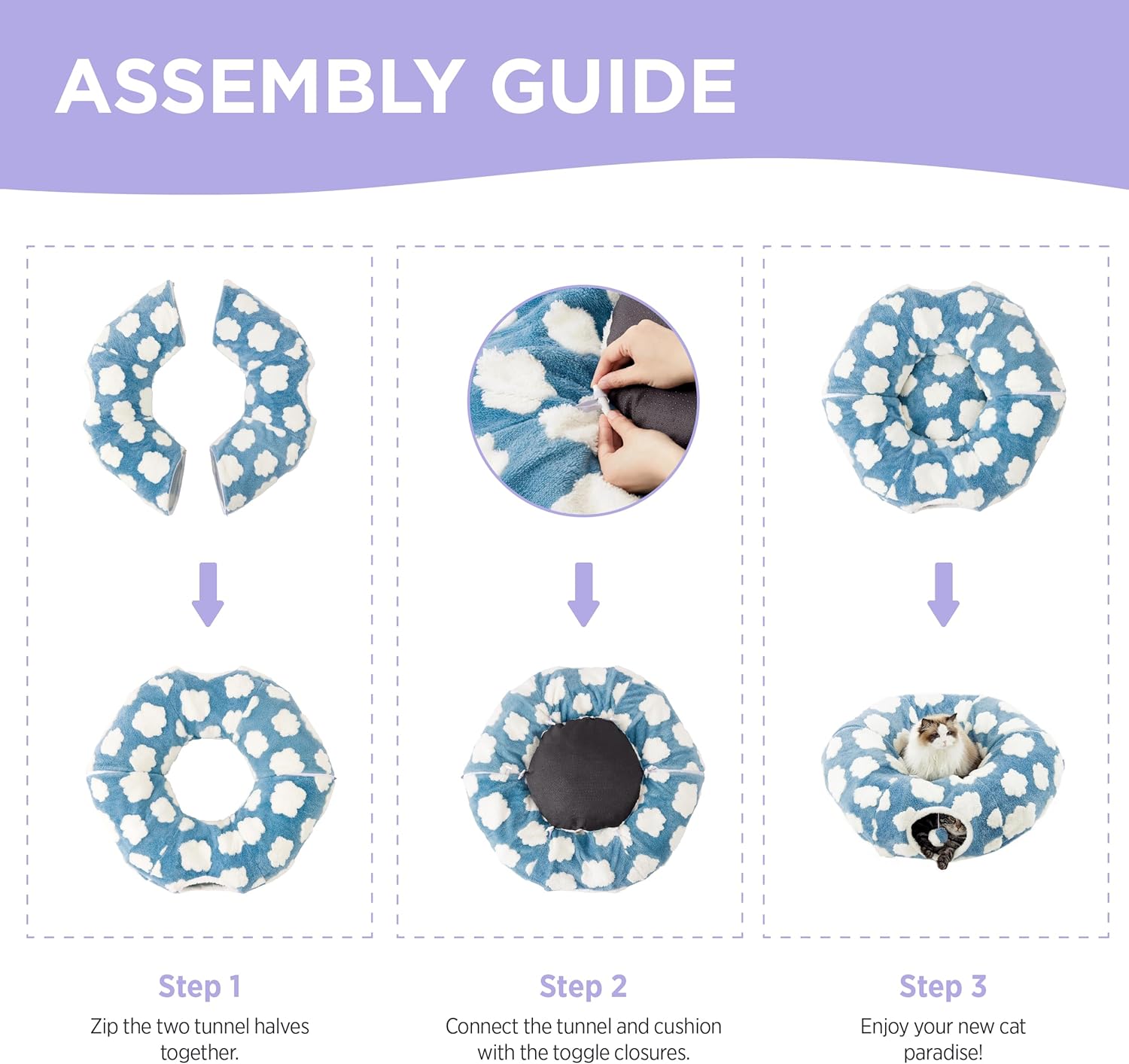 - Versatile 2-in-1 Comfort: Transform your pet's playtime and rest with Lesure's innovative 2-in-1 Cat Tunnel Bed. This design marries the excitement of a zip-together play tunnel with the serene comfort of a cozy nap spot, perfectly accommodating cats up to 15 lbs and small pets like rabbits or ferrets. Ideal for households with multiple furry friends, it offers a hidden play area and a tranquil sleeping space all in one.