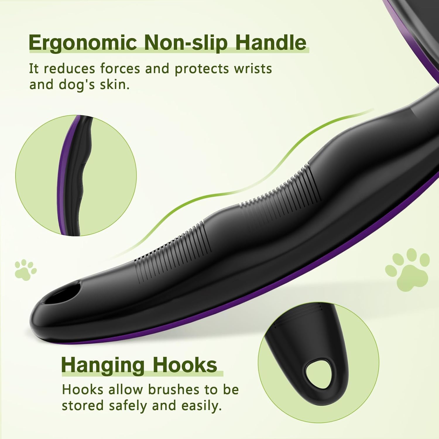 - UNIQUE HANDLE, ERGONOMIC DESIGN : Features an ergonomic design with a non-slip handle that provides a comfortable grip. The lightweight brush, weighing only 89g, allows for extended periods of grooming without experiencing fatigue. This design ensures that both you and your pet are comfortable during grooming sessions.