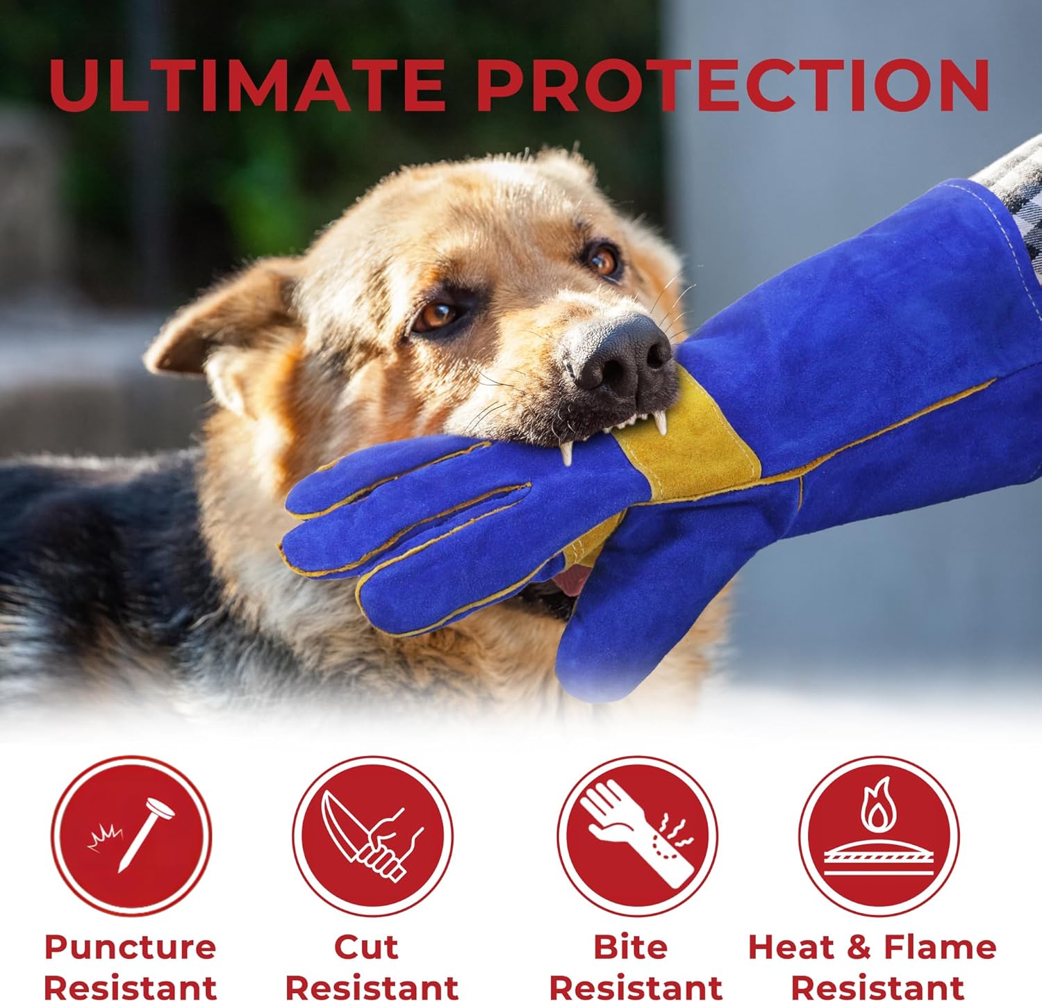 - 14" Long-Sleeve Design Protects Forearms: These protective gloves extend up to your elbows, safeguarding your forearms from claws. The cotton lining ensures that the bite-proof gloves are easy and comfortable to wear