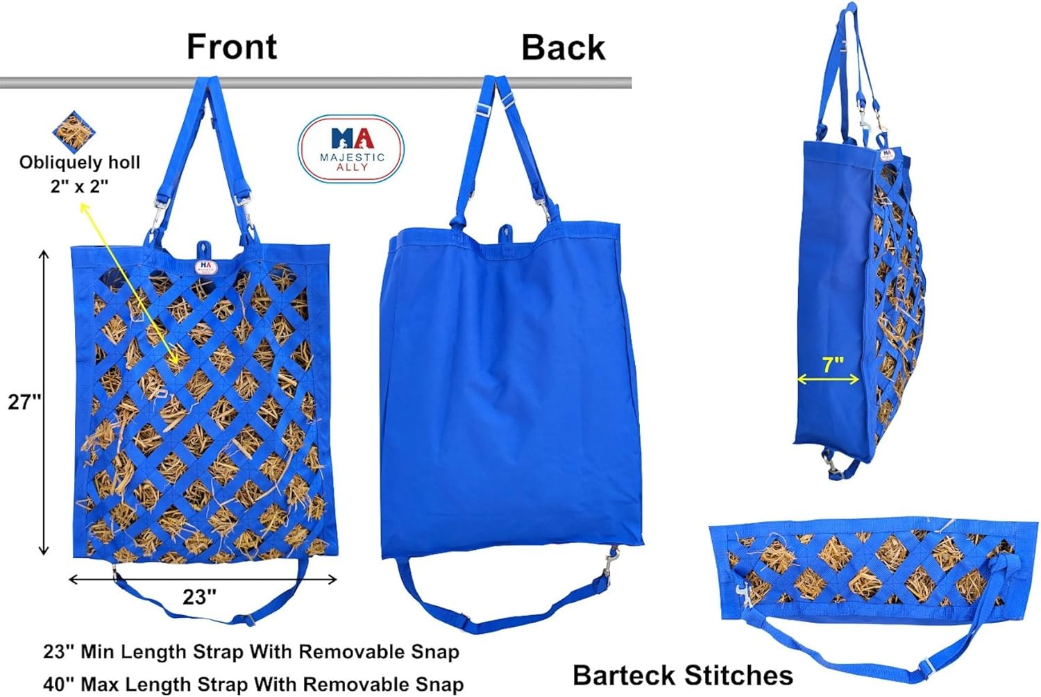 Majestic Ally Premium Nylon Hay Bag for Horses and Livestock, Simulates Grazing, Slow Feeding, Heavy-Duty PP Webbing,Quick-Adjust Straps, Small Hole for Digestion, Multiple Colors (Teal)