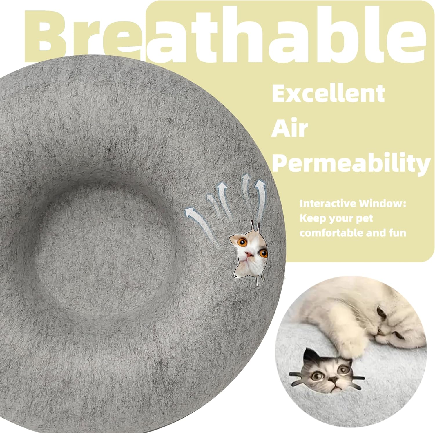 • ๐ŸฑFour Seasons Cat Nest: Donut felt cat bed, Unlike other litters or catteries that can only serve at most one pet, they can either hide inside the den for comfort and private time or rest on top.This Cat Bed Cave can be a wonderful gift for cat owners. It will easily attract cats and be loved by them.