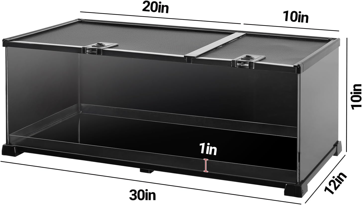 - 【Glass Reptile Terrarium】This black reptile tank size: 30" x 12" x 10". Made of high quality glass for sturdy and safety, suitable for snake, tortoise, Spider, blue-tongue skink, lizard and more reptiles.
