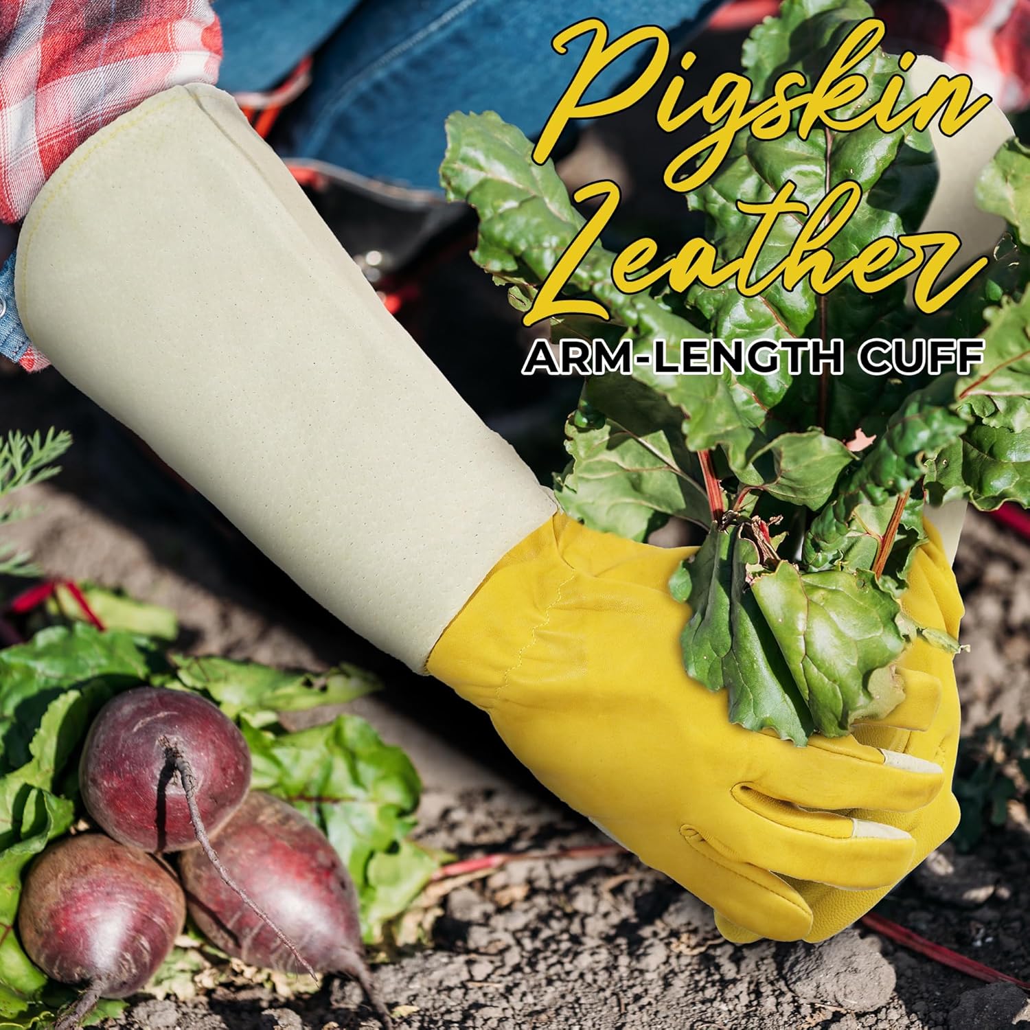 HANDLANDY Rose Pruning Gardening Gloves for Men Women, Thorn Proof Forearm Protection Leather Garden Gloves, Gardening Gifts for Gardeners (Yellow- goatskin, Large (Pack of 1))