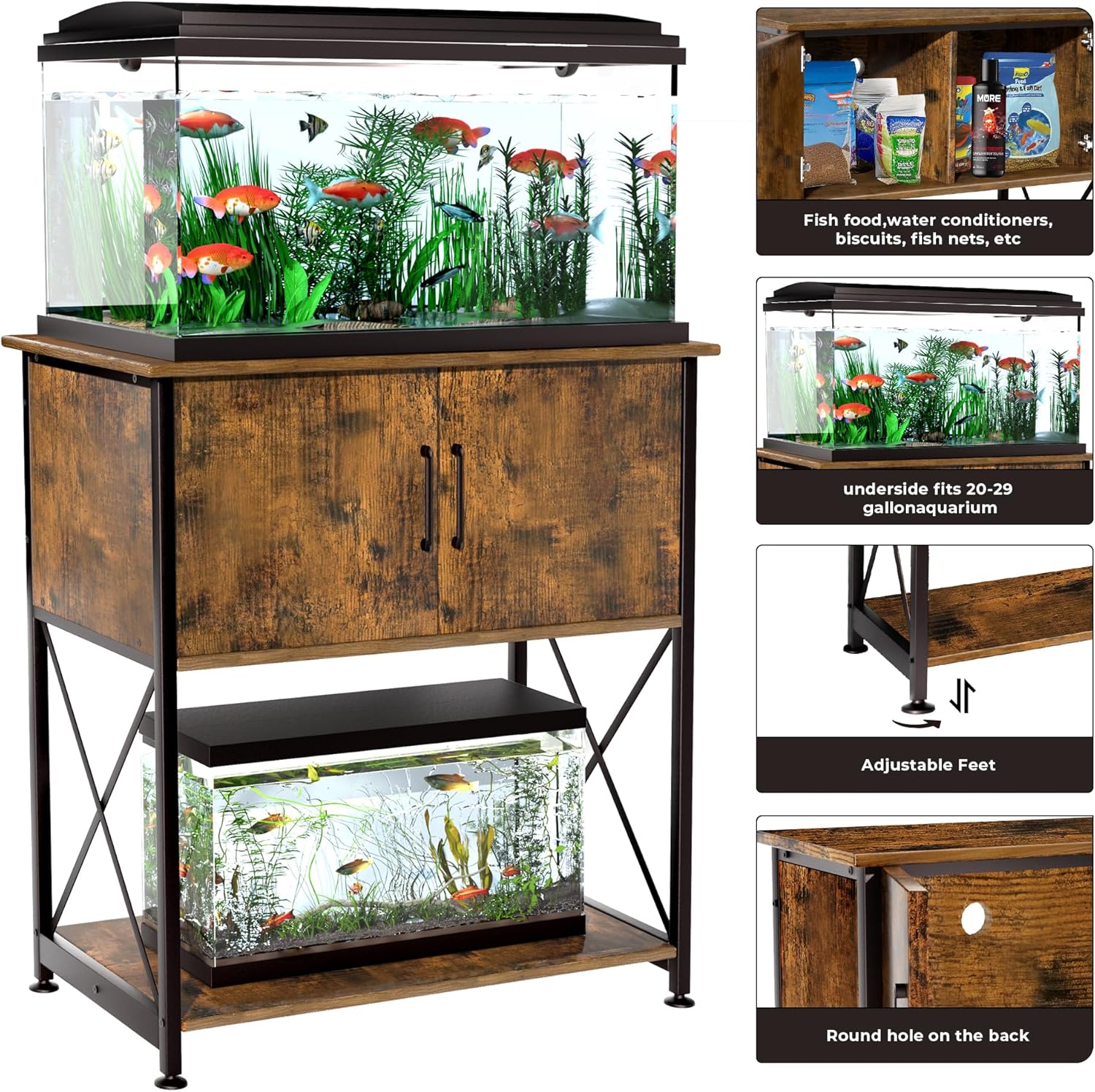 20-29 Gallon Aquarium Stand Metal Frame Fish Tank Stand with Cabinet Storage, for 20 Gallon Long Aquarium,30.7" L*16.5" W Tabletop,330LBS Capacity Rustic Brown and Black PG01YGN