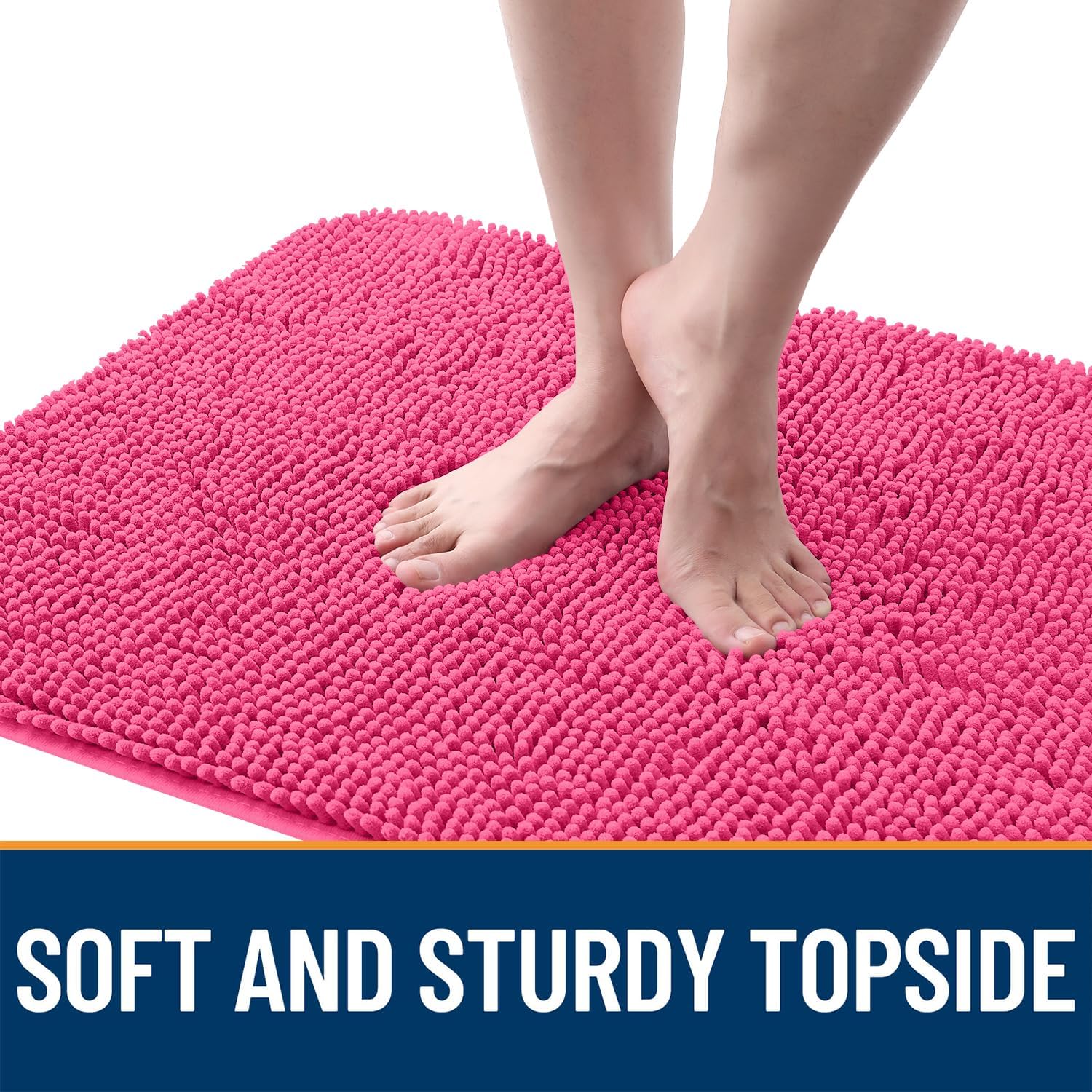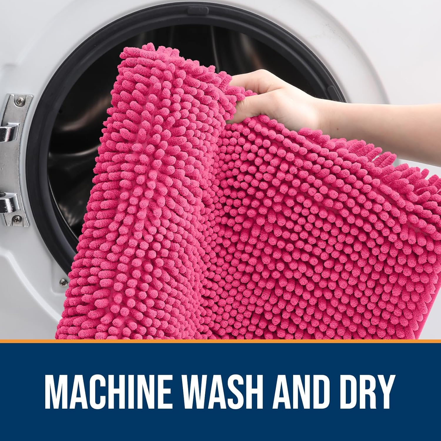 OLANLY Dog Door Mat for Muddy Paws 24x16, Absorbs Moisture and Dirt, Absorbent Non-Slip Washable Doormat, Quick Dry Chenille Mud Mat for Dogs, Entry Indoor Entryway Carpet for Inside Floor, Hot Pink