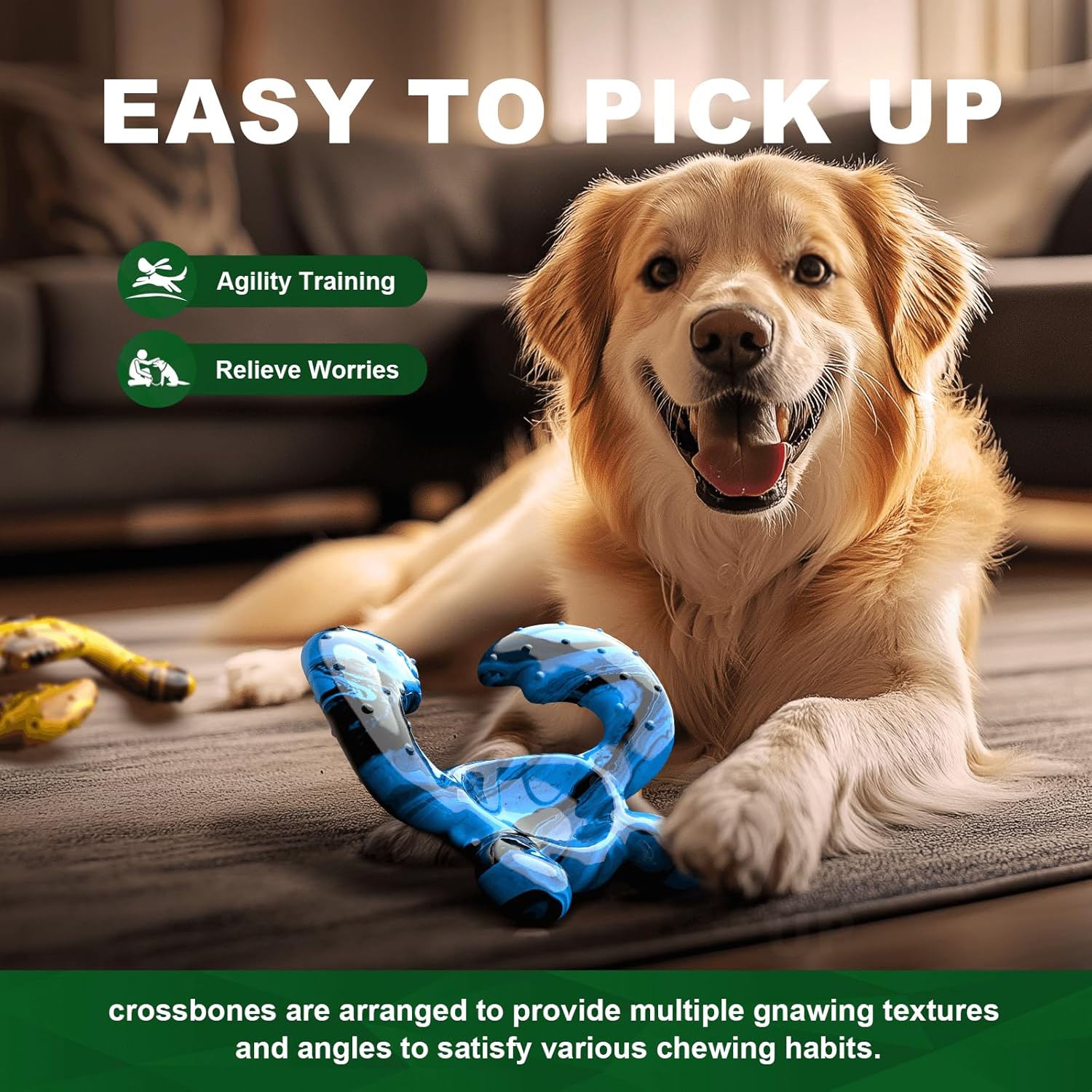 - Teeth Cleaning and Gum Care - Textured surface promotes teeth cleaning and massages gums, improving oral health through daily chewing.