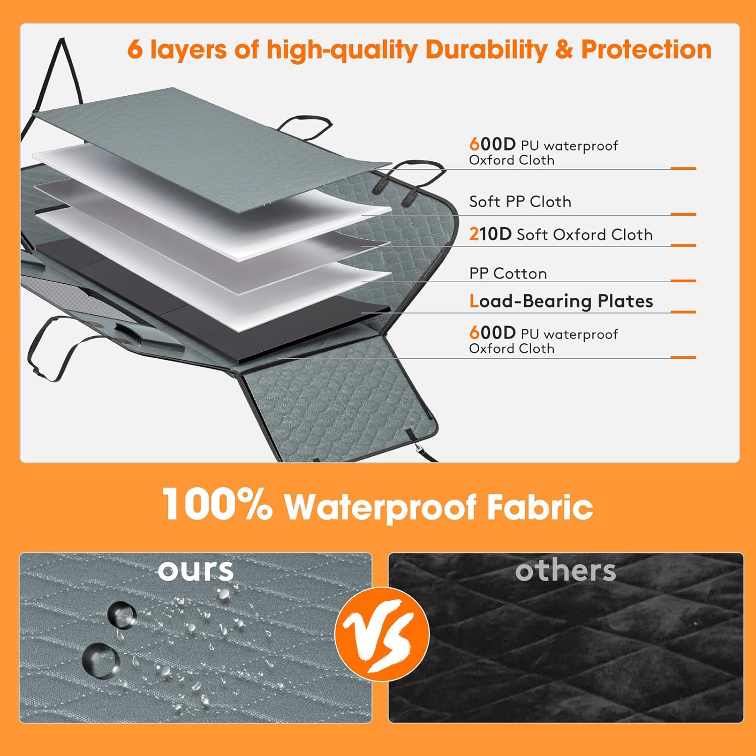 - 【6-Layer Durability & Protection】No more slouchy dog seat covers! Unlike the traditional seat cover being soft and easy to collapse, it can hold up a weight capacity of 280 lbs, making it suitable for various dog sizes! The 52"W x 63"L backseat seat covers for cars uses the new upgraded fabric of 6-layer fabrics, this dog back seat cover is waterproof to protect your seat from mud, liquid, and hair.