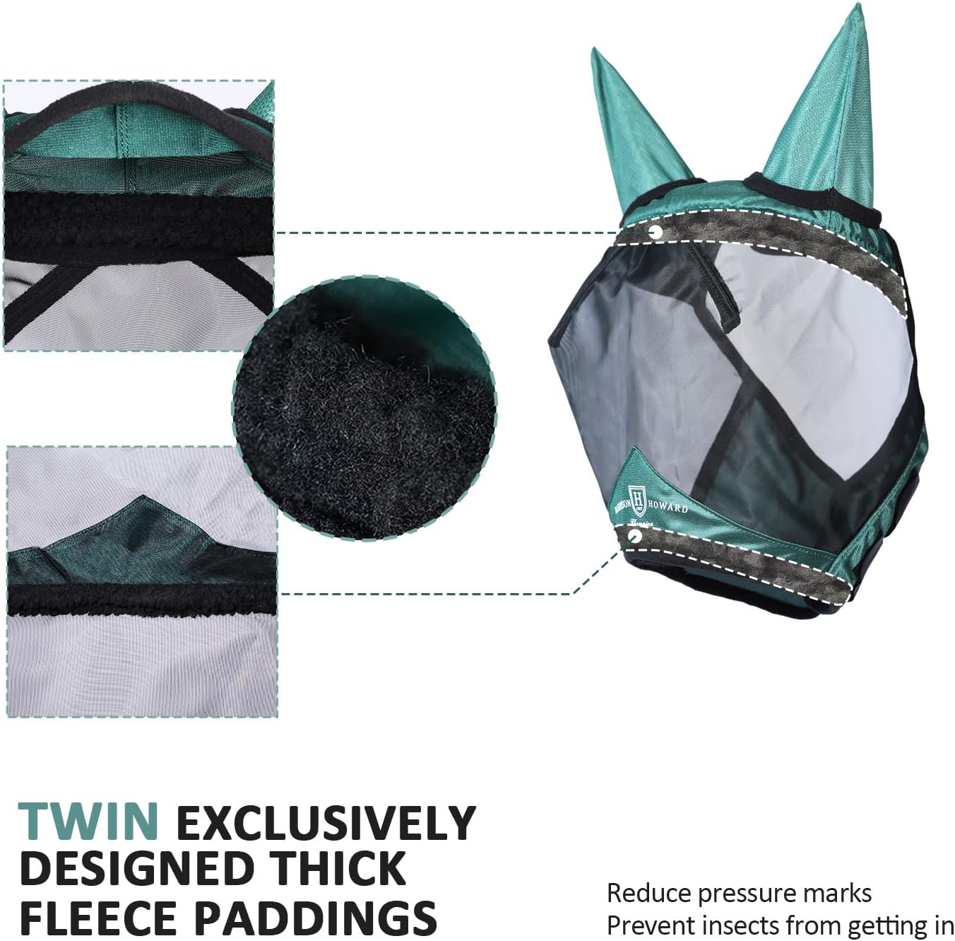 - Lightweight, Multi-Function Fabrics: Ultra-fine, ventilating, and long-lasting nylon mesh offers reliable UV protection for your horse's skin, it effectively prevents sun damage and bleaching. Quality edging along the nose cover enhances durability.