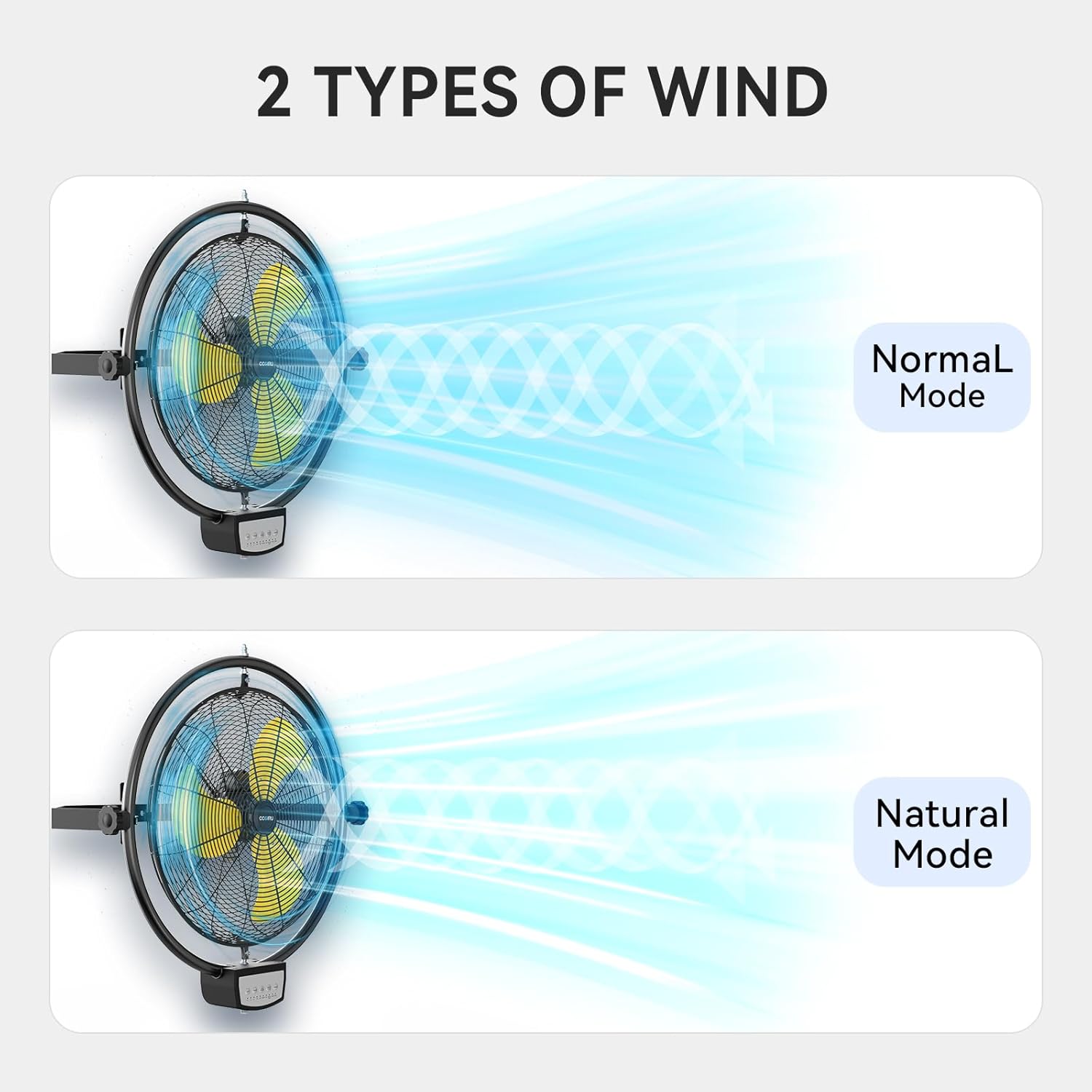 - Dual-Mode Control Industrial Wall Fan: Manual operation or remote control. Operate the wall mounted fan via touch the panel or remote control that reaches up to 26.24 ft distance for easily use even at higher installations. It's easy to choose the more comfortable way you wanted