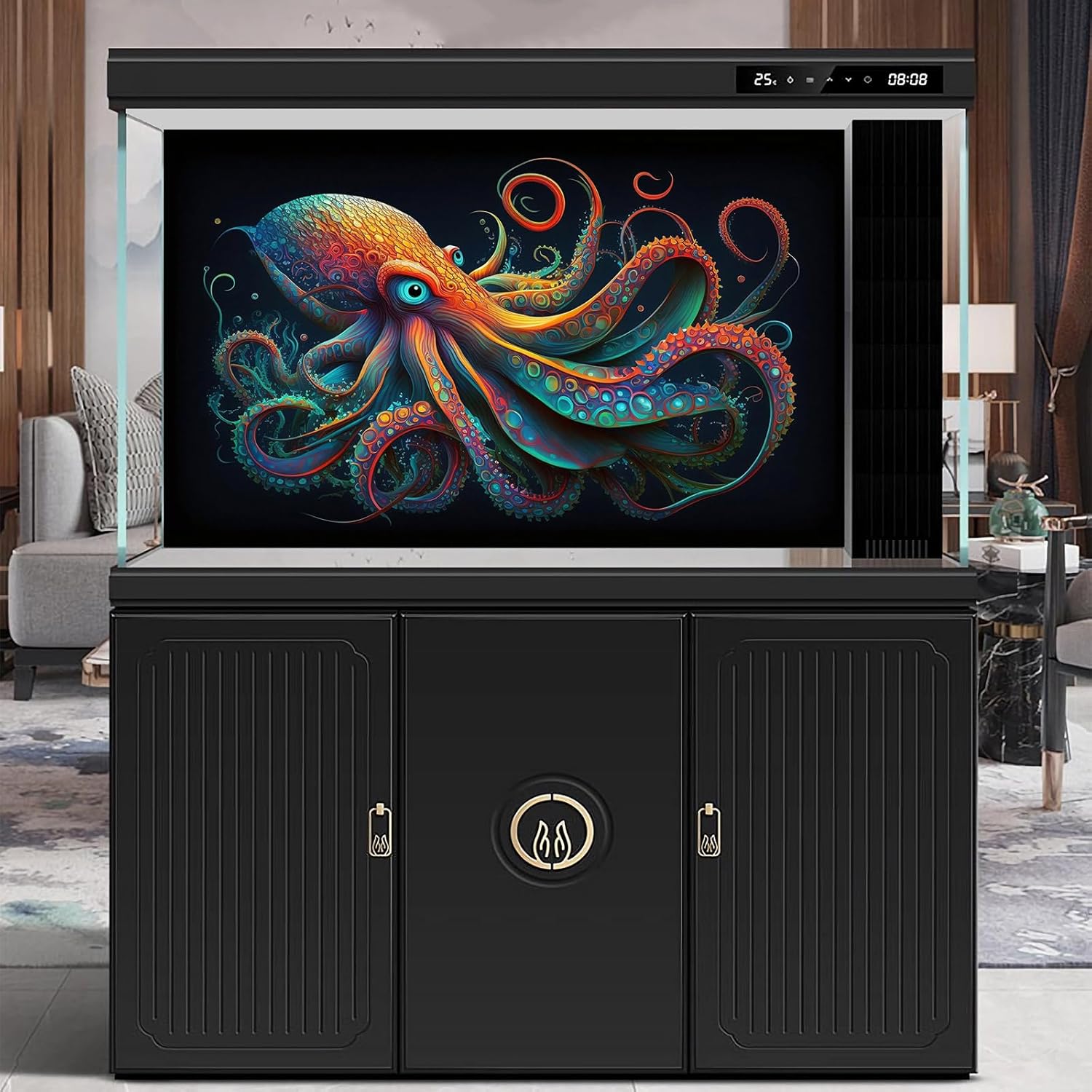 Octopus Aquarium Background Abstract Colorful Octopus Terrarium Background Glowing Octopus on Black Background Fish Tank Backdrop Poster Wallpaper Decorations Vinyl 30x18in