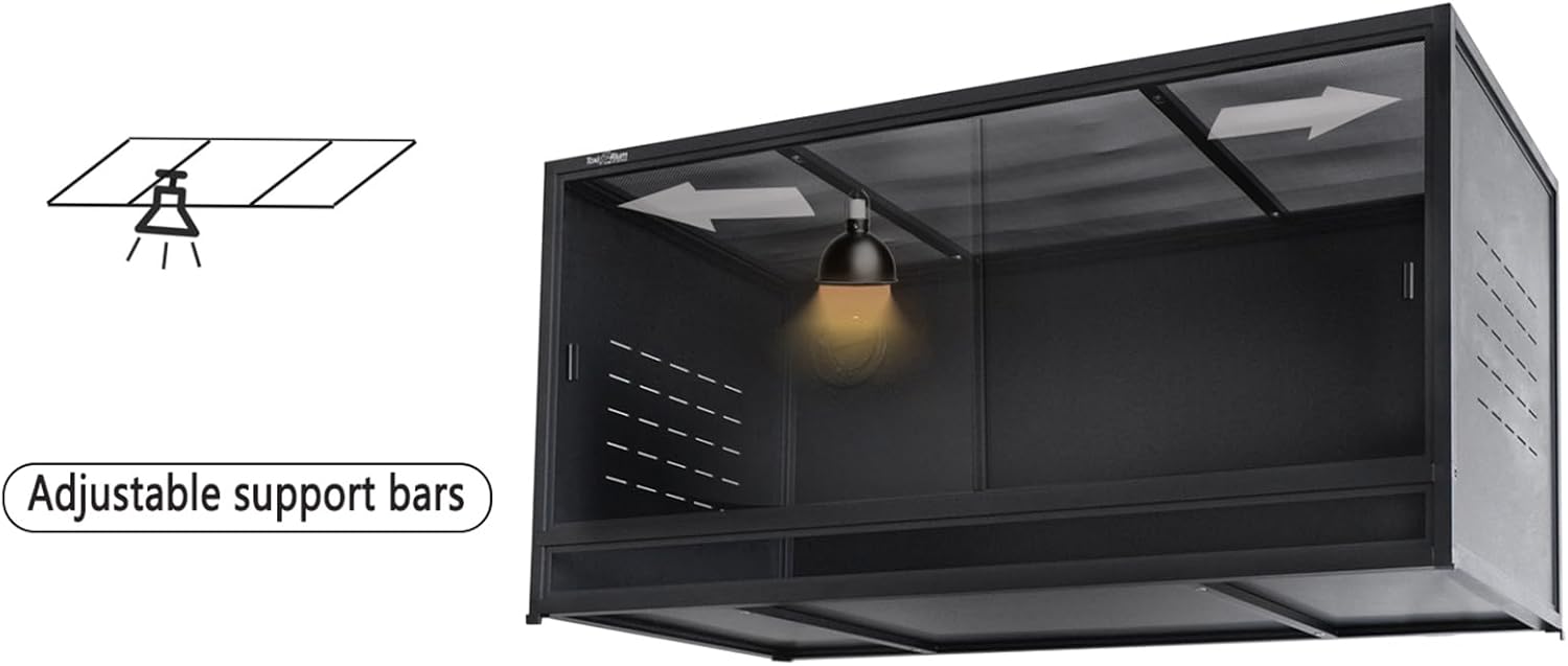 - 【Front Opening Reptile Terrarium】: Built with easy-clean double sliding doors, allow you to easily see your reptiles and interact with them, and give you easy access to your pets, especially when your reptile friends need your help. A secure keyless lock prevents your reptile escape out or being hurt incidentally, and there's no need to worry about losing the keys either