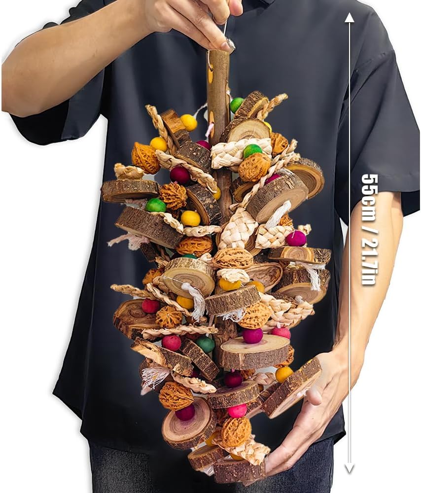 Extra Large Bird Parrot Toys- 21.7 inch Multicolored Natural Wooden Walnut Parrot Chewing Toy Suggested for Macaws cokatoos, African Grey and a Variety of Amazon Parrots. (Large Size)