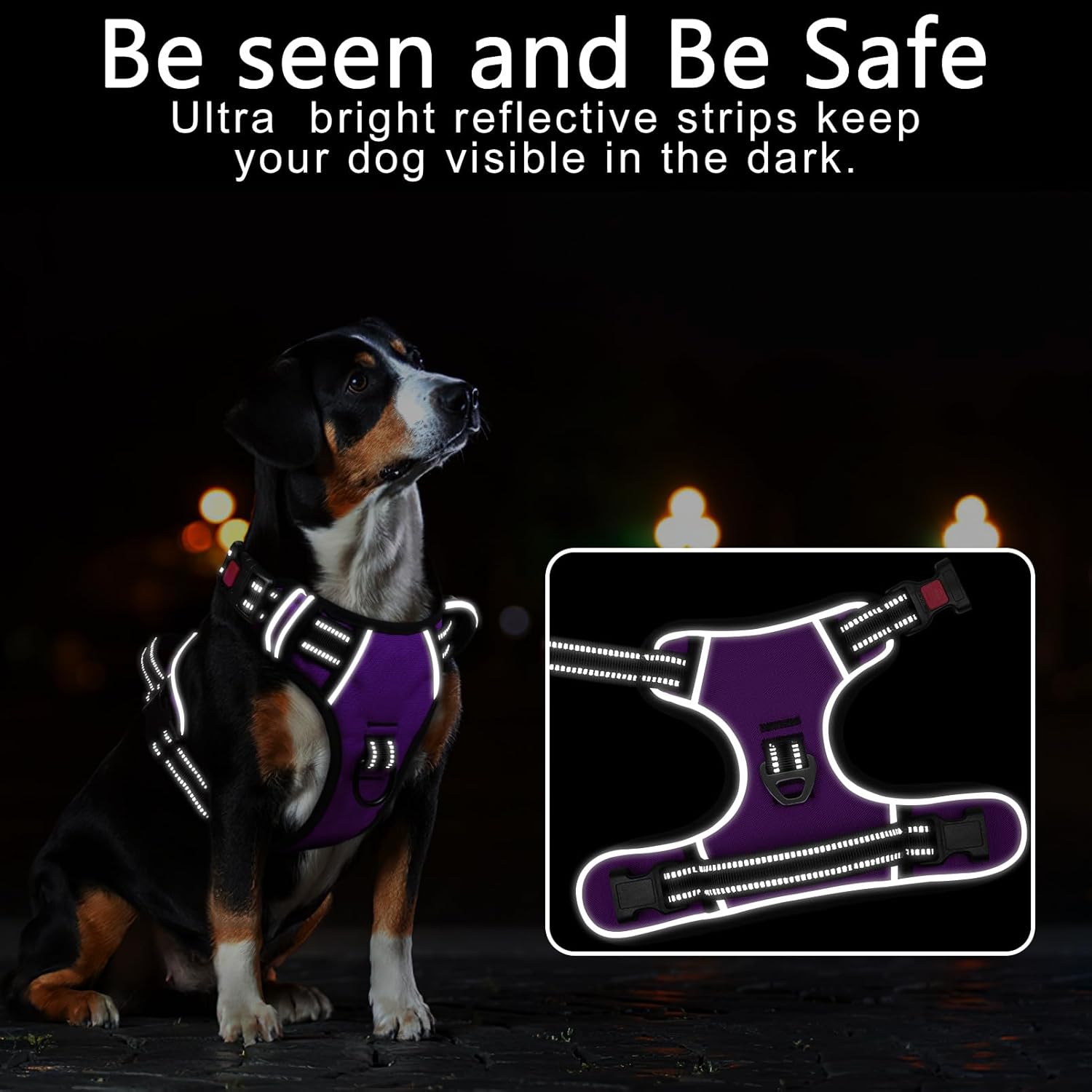 Timos Dog Harness Large Sized, No Pull with Neck Lockable Snap,No Choke Front Clip Dog Reflective Harness,Adjustable Metal Rings 3 Buckles,Easy Control Handle for Large Dogs Purple L