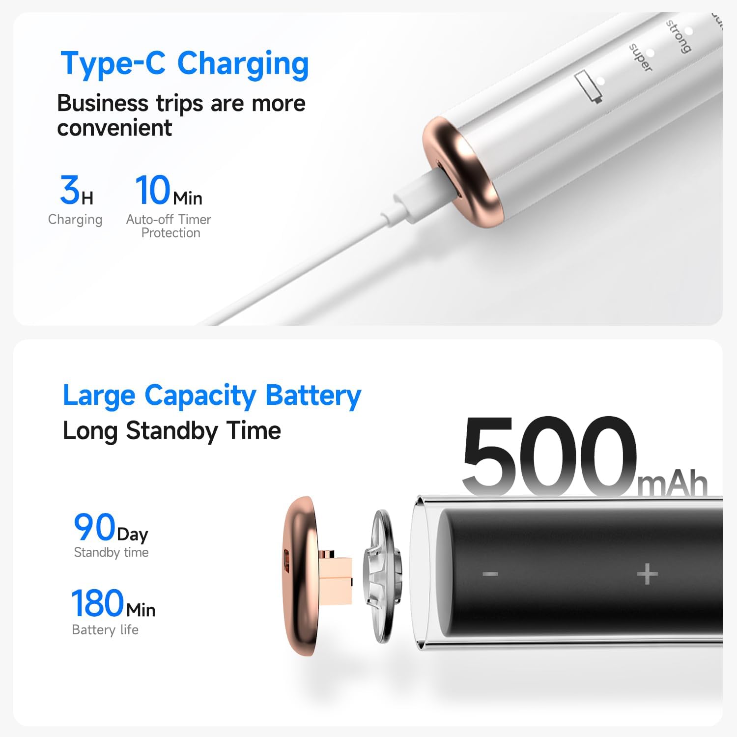- 4 LED Light & IPX6 Waterproof – Built-in 4 high-brightness LED lights provide clear visibility of hard-to-reach areas, making cleaning more precise. With IPX6 waterproof protection, this electric tartar remover is safe to rinse under water after use, ensuring hygiene and durability.