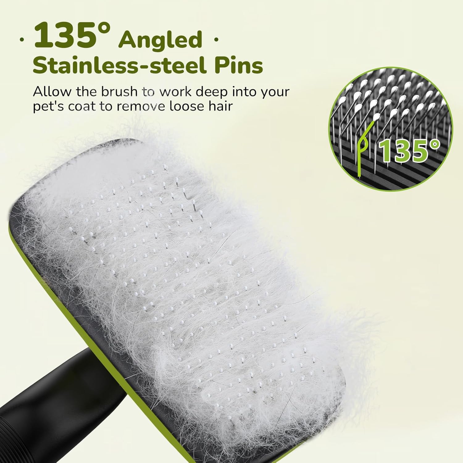 - SELF-CLEANING MECHANISM : The slicker brush features a unique self-cleaning mechanism that allows you to easily removes hair from the brush with just the push of a button.
