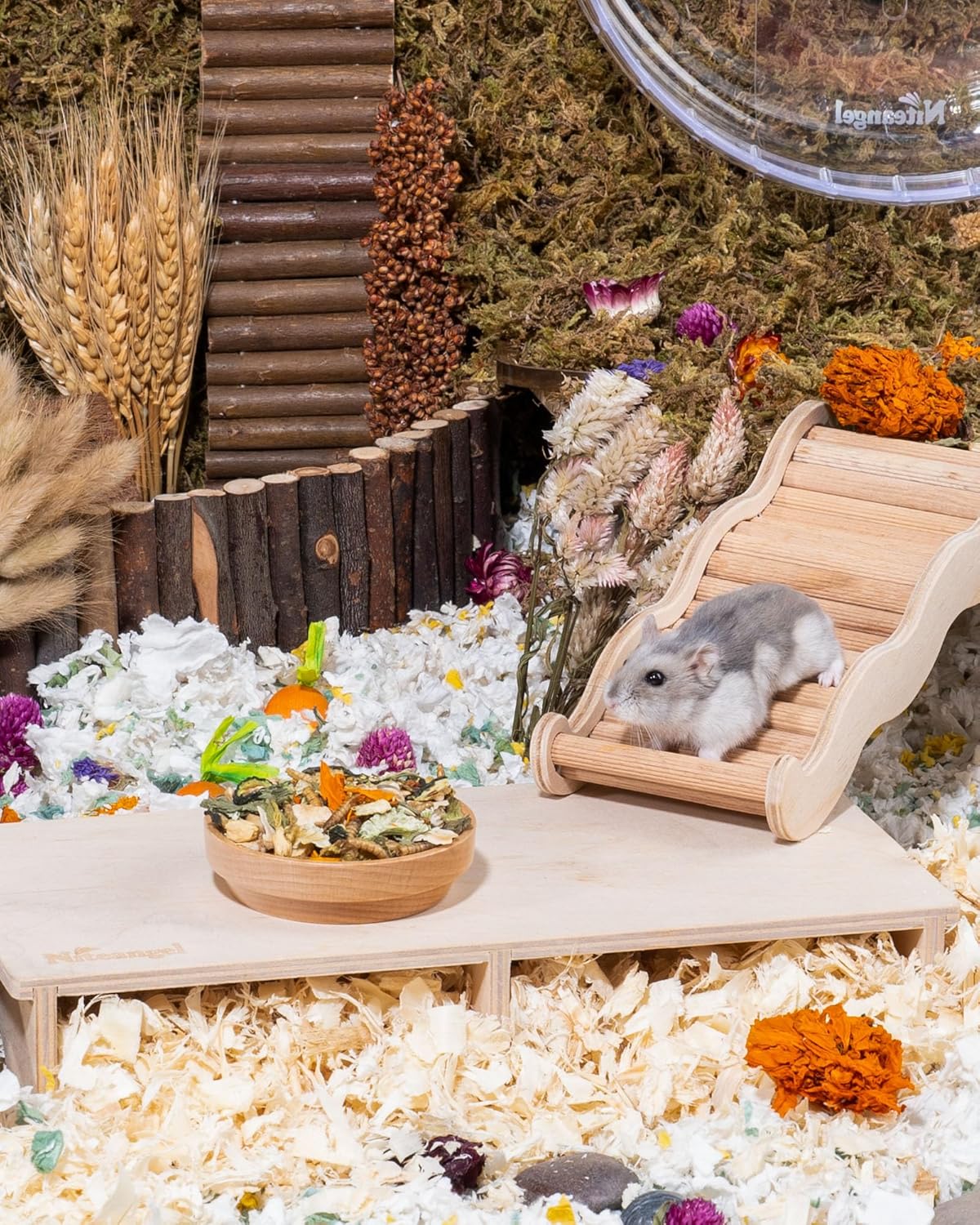 - Promotes Dental Well-being and Enrichment: Crafted to support dental Well-being, our hamster food includes crunchy elements like roasted chickpea flakes and a blend of nutritious ingredients such as pumpkin, safflower, and flax. This combination helps maintain dental hygiene and provides mental and physical enrichment, keeping your hamster active and engaged.